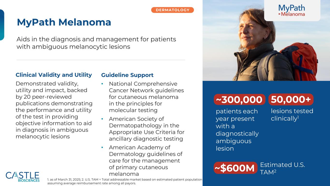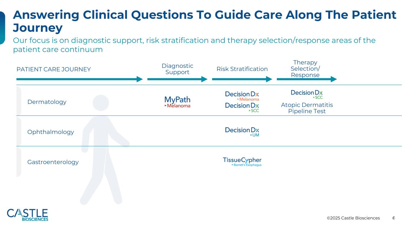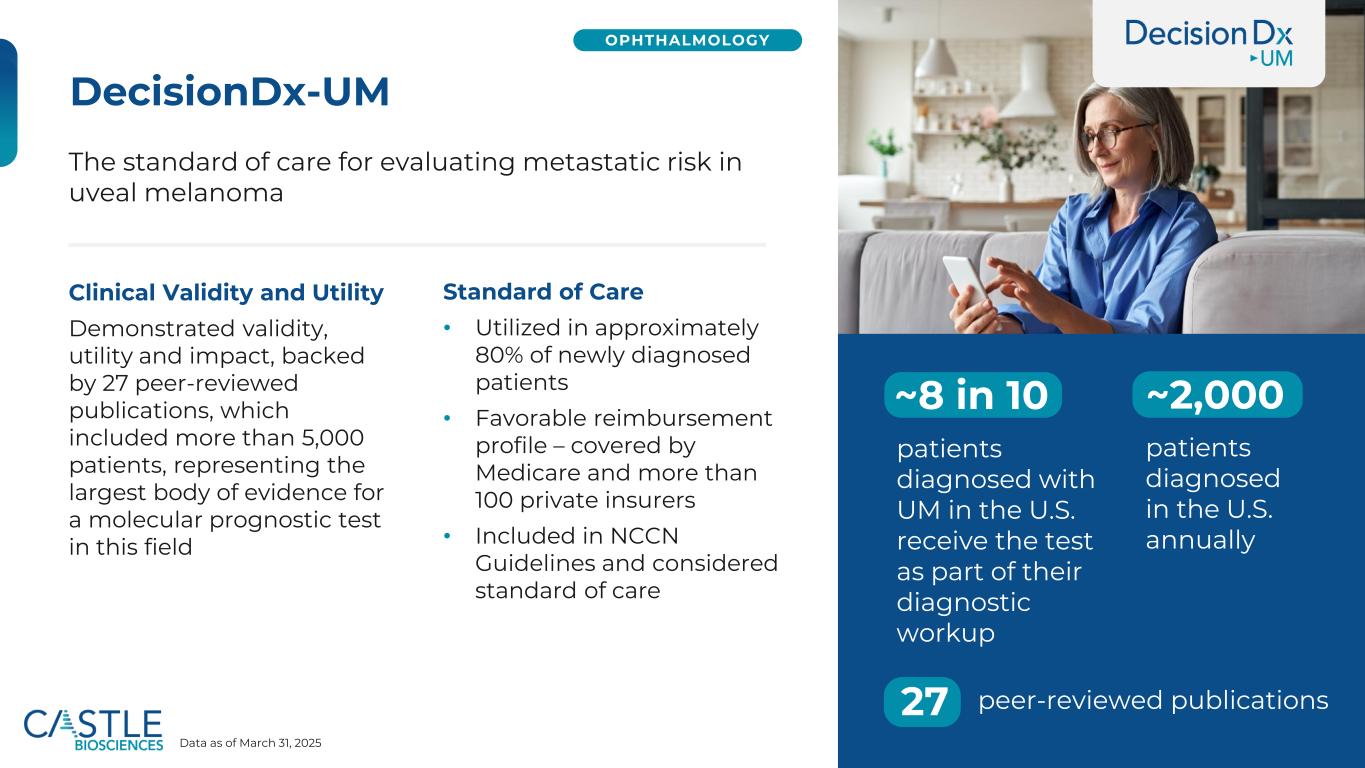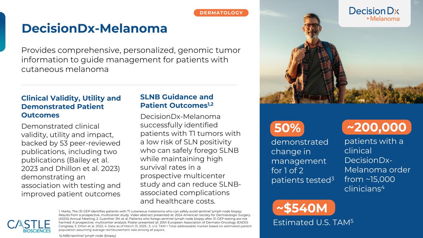 「私たちは、中核となる収益ドライバーにおいて全体的に力強い成長を遂げました。また、皮膚がん啓発月間である5月に、DecisionDx-Melanomaが最近重要なマイルストーンを達成したことを特に嬉しく思います。このマイルストーンは、DecisionDx-Melanomaが患者の生存率向上に関連することを示す非常に説得力のあるデータを考えれば、確かに期待されたものであり、私はキャッスルチーム全員を非常に誇りに思います。私たちと共にこのマイルストーンを達成した臨床医と患者さんに感謝しています。