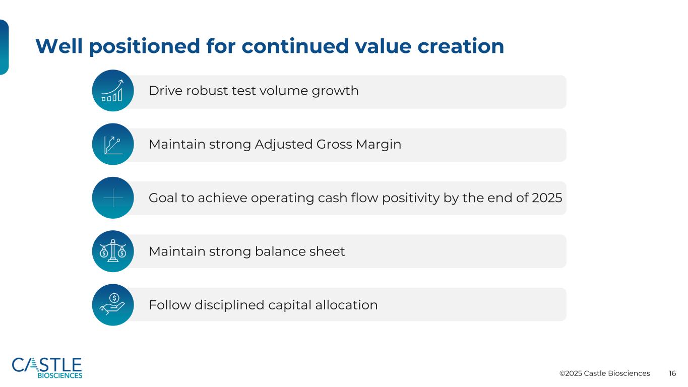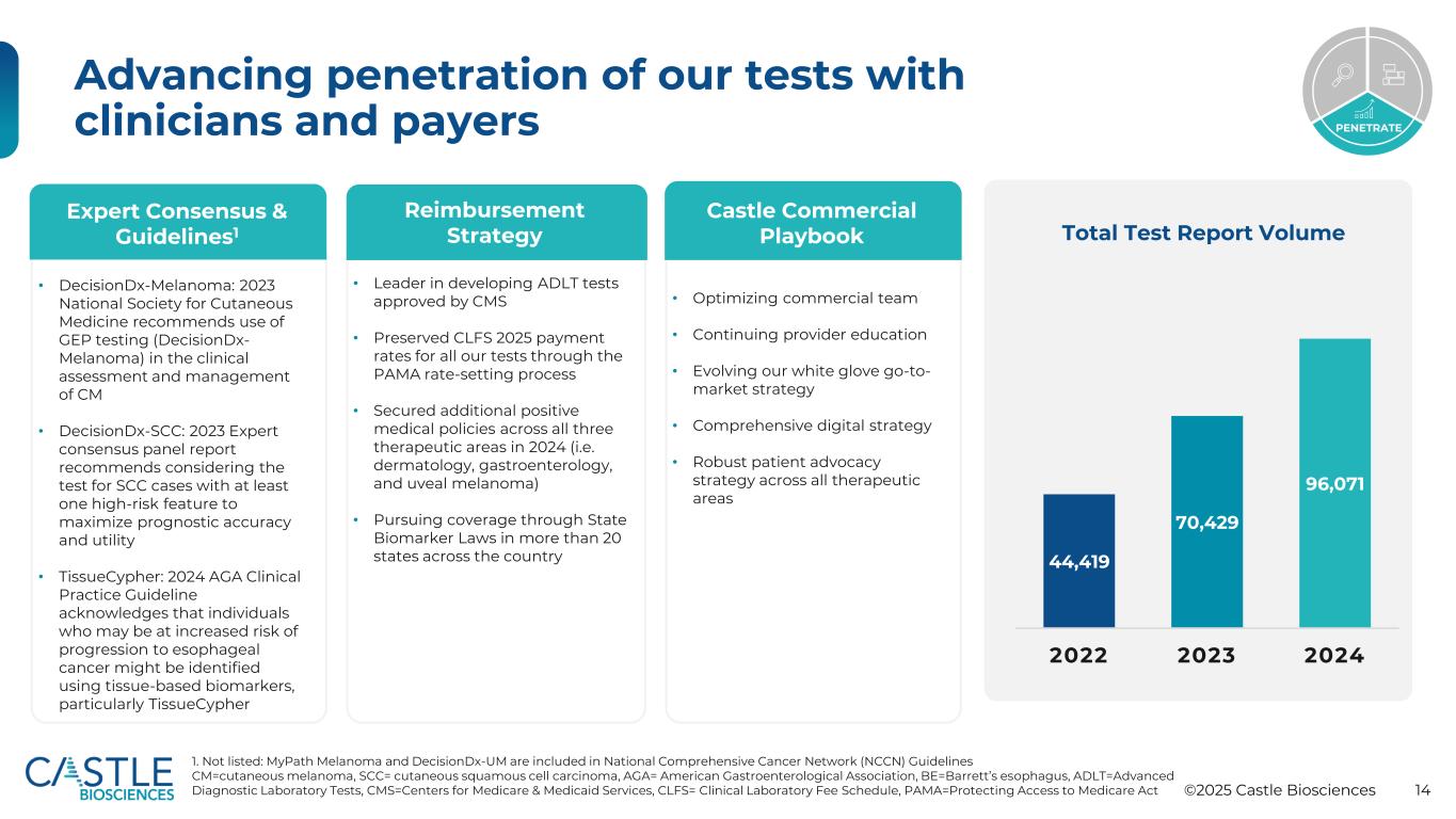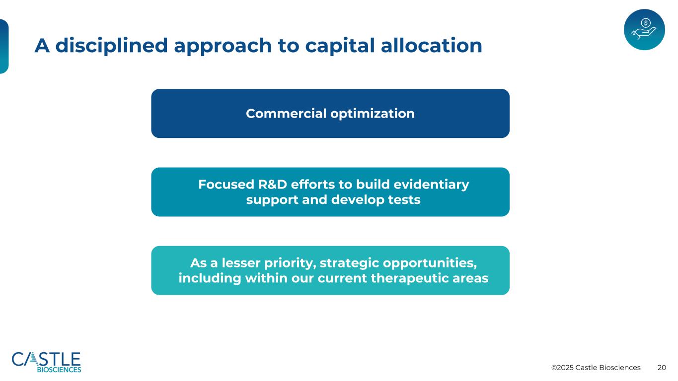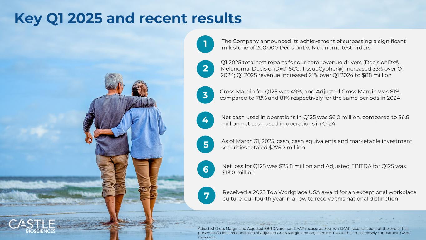 「私たちは、中核となる収益ドライバーにおいて全体的に力強い成長を遂げました。また、皮膚がん啓発月間である5月に、DecisionDx-Melanomaが最近重要なマイルストーンを達成したことを特に嬉しく思います。このマイルストーンは、DecisionDx-Melanomaが患者の生存率向上に関連することを示す非常に説得力のあるデータを考えれば、確かに期待されたものであり、私はキャッスルチーム全員を非常に誇りに思います。私たちと共にこのマイルストーンを達成した臨床医と患者さんに感謝しています。