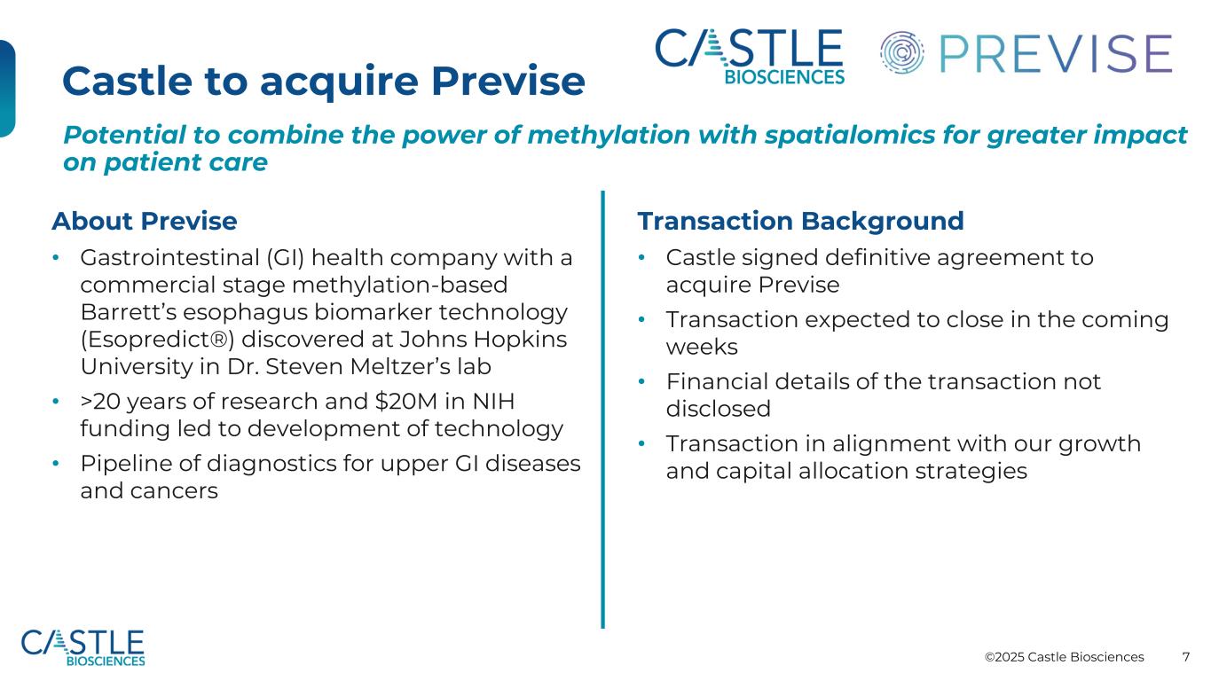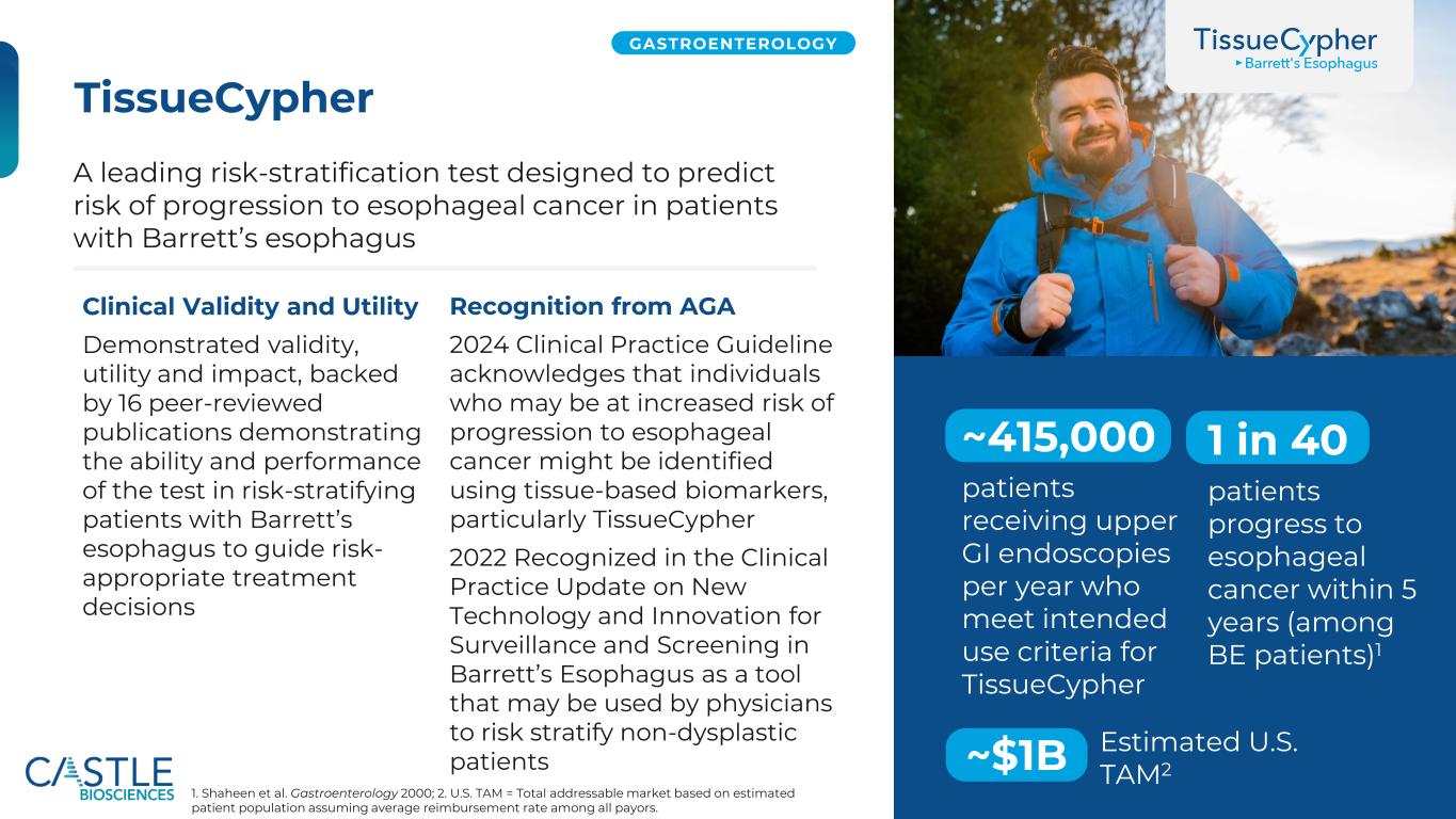-当社は、食道がん啓発月間を記念して、4月中、主要な教育プログラムやイニシアチブを支援することを発表した。キャッスルは食道がんアクションネットワーク(ECAN)、米国前腸協会(AFS)、The Gut Doctor Podcast LLCと協力し、食道がんの予防、教育、アドボカシーを推進する。詳細は2025年4月8日付の当社ニュースリリースを参照。