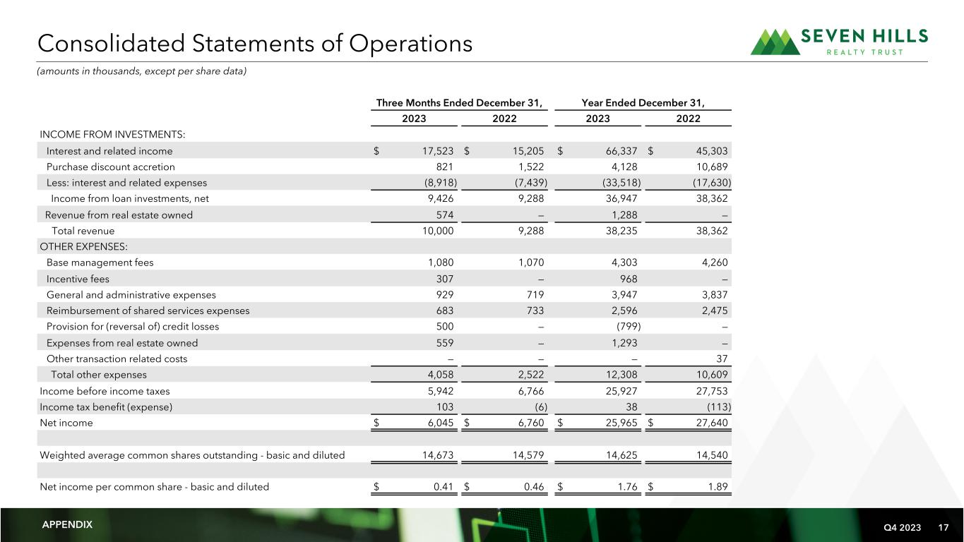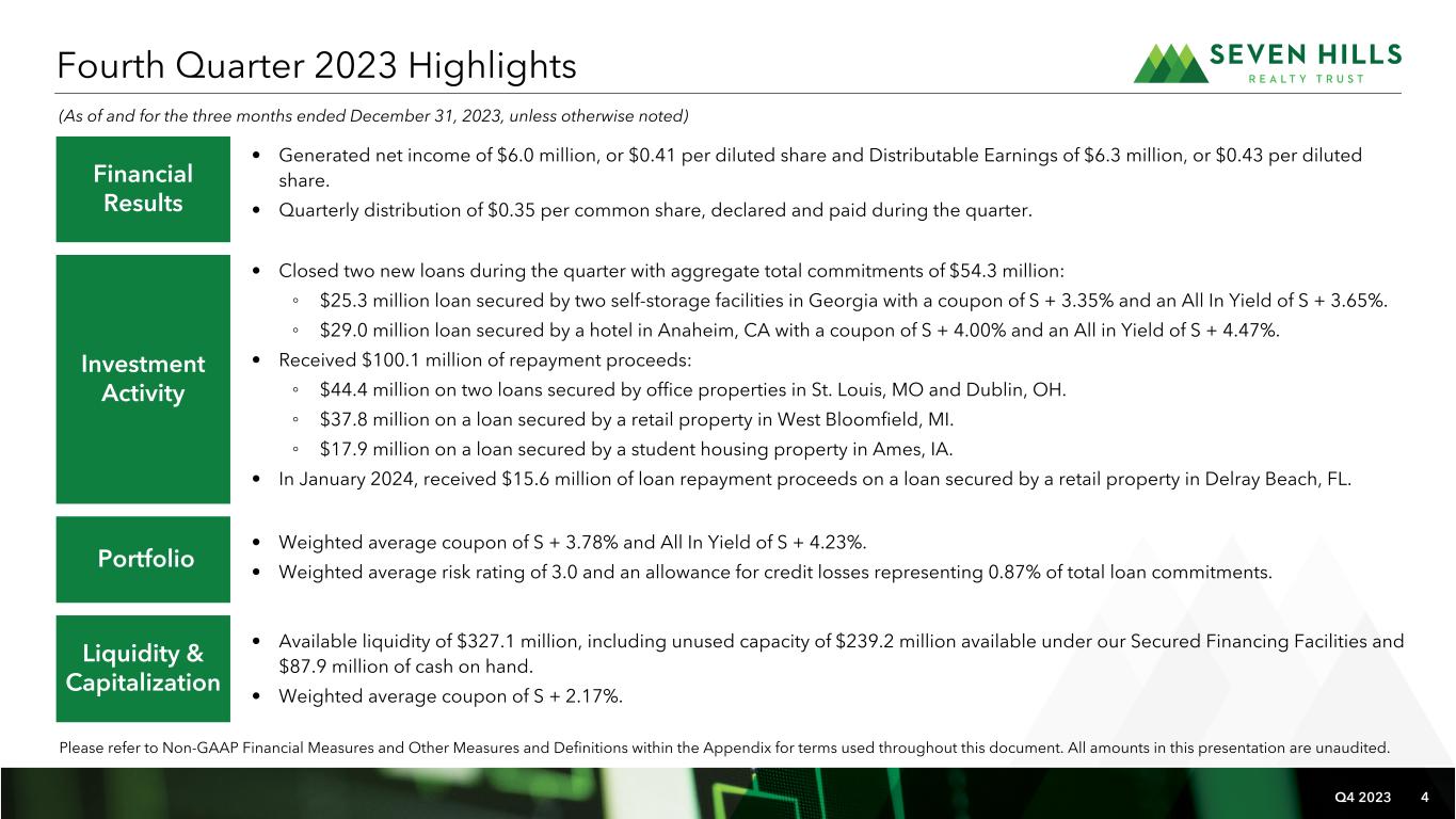 Seven Hills Realty Trust Fourth Quarter 2023 Financial Results Exhibit 99.2