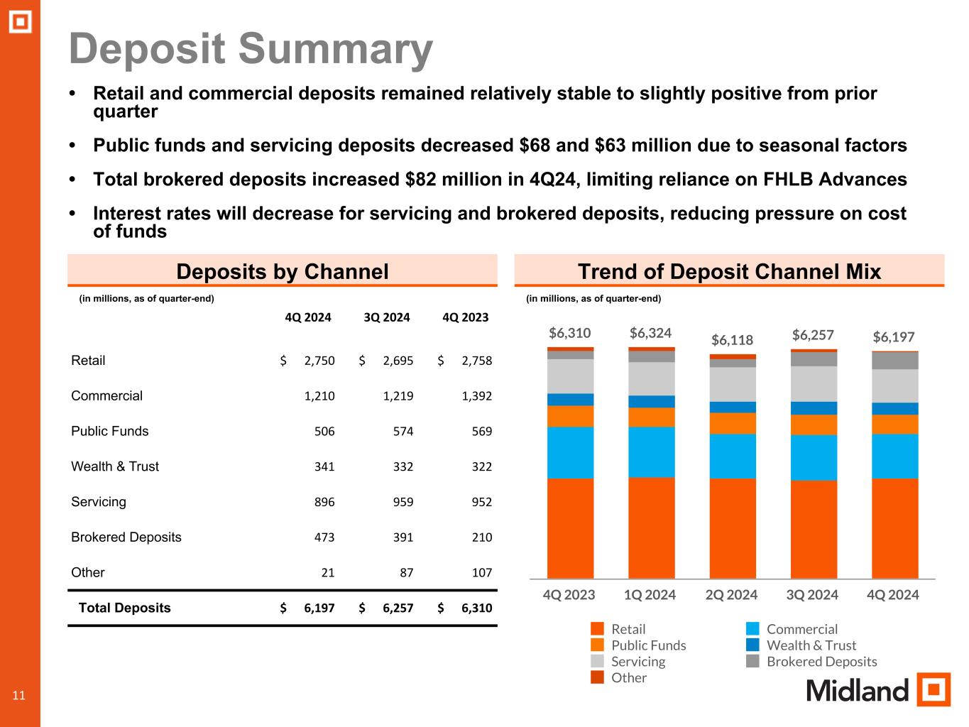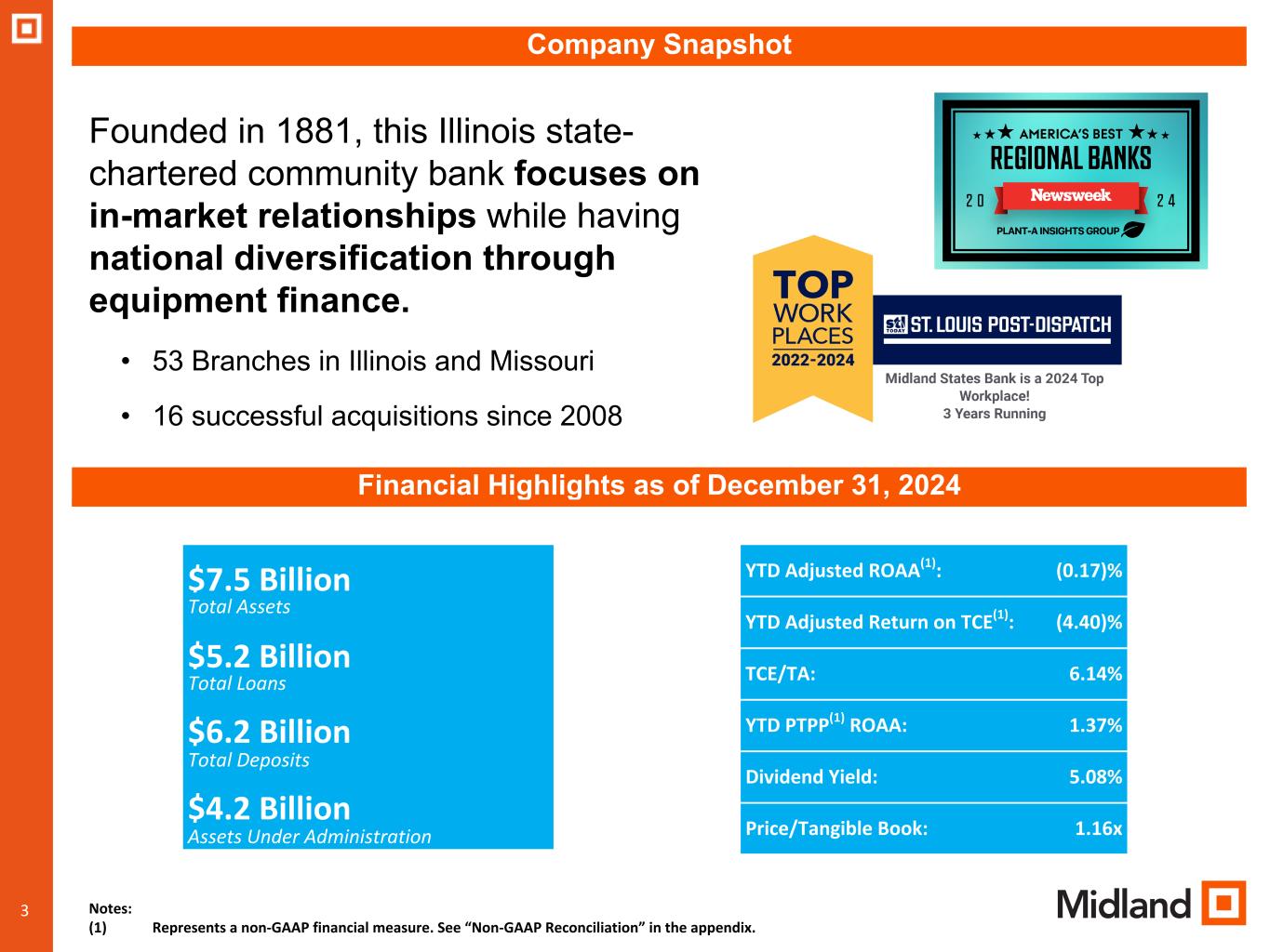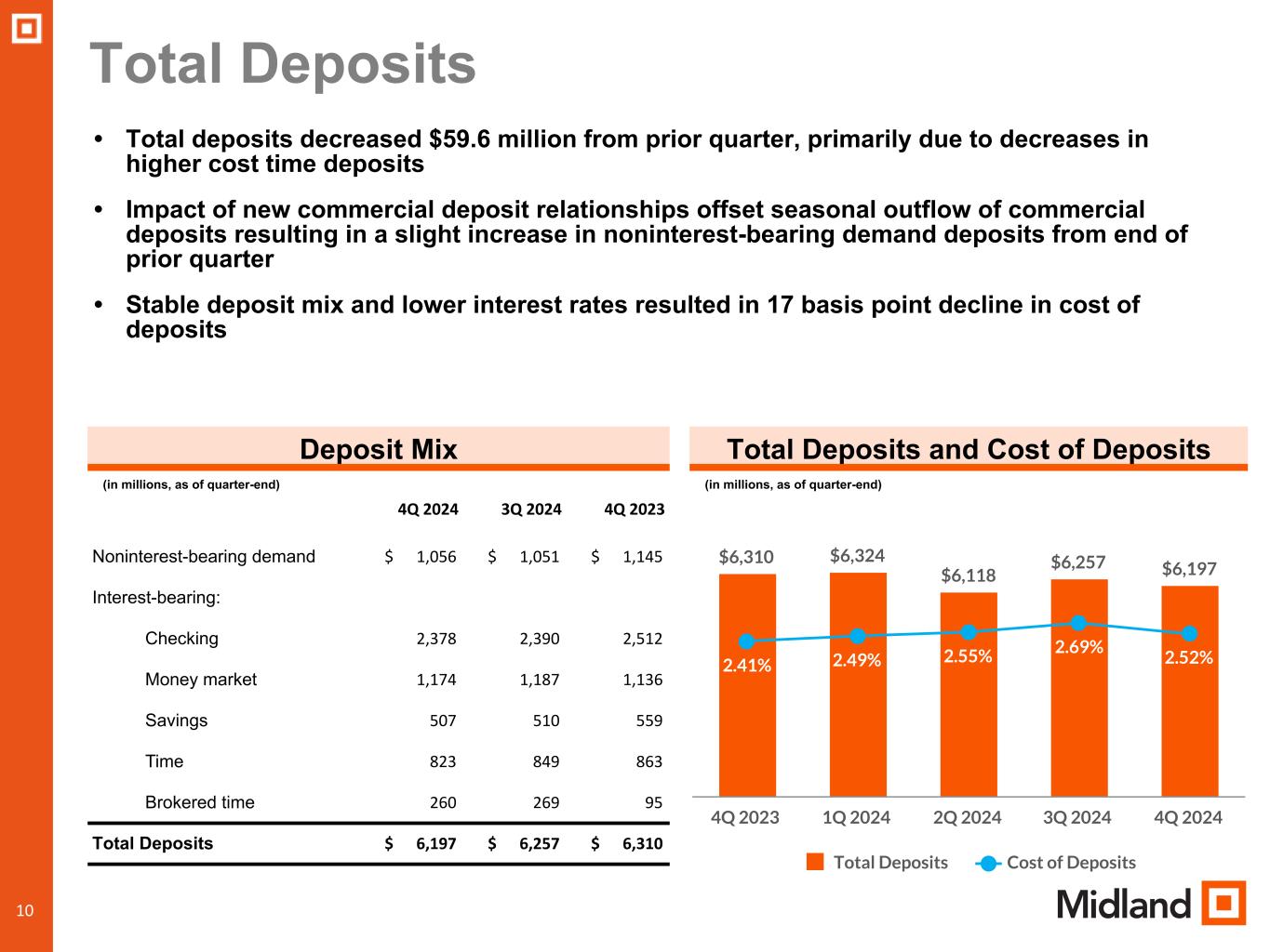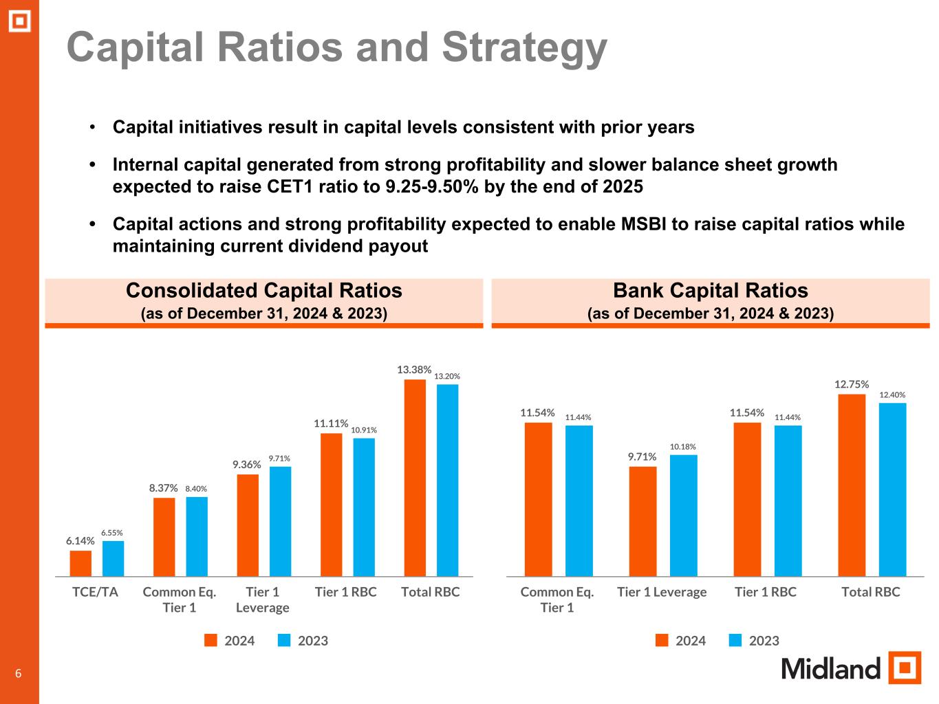 “We are seeing positive trends in new client additions in both our community bank and wealth management, net interest margin expanded in the quarter and with the actions we took in the quarter to reduce credit risk, we believe we are well positioned to deliver solid financial performance in 2025. We will continue to make investments in talent, technology, and marketing to further enhance our ability to generate profitable growth in the coming years” said Mr. Ludwig.