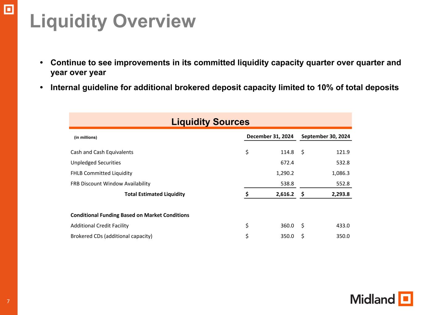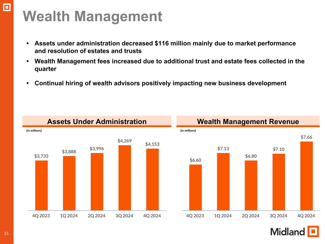 •Wealth management revenue of $7.7 million, compared to $7.1 million in prior quarter