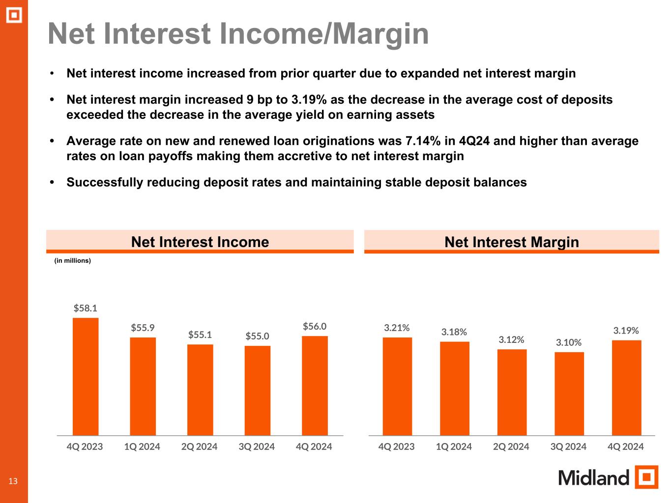 •Net interest margin of 3.19%, compared to 3.10% in prior quarter