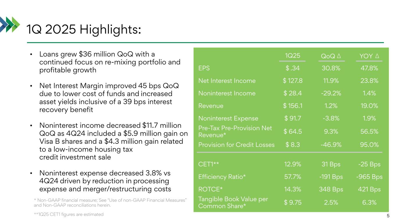 | Dollars in thousands | Change 1Q25 vs. | ||||||||||||||||||||||||||||