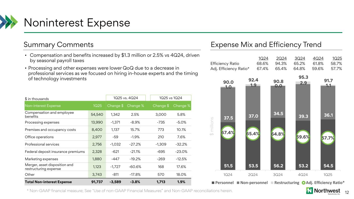 | Total noninterest expense | $ | 91,737 | 95,326 | 90,024 | (3.8) | % | 1.9 | % | |||||||||||||||||||||