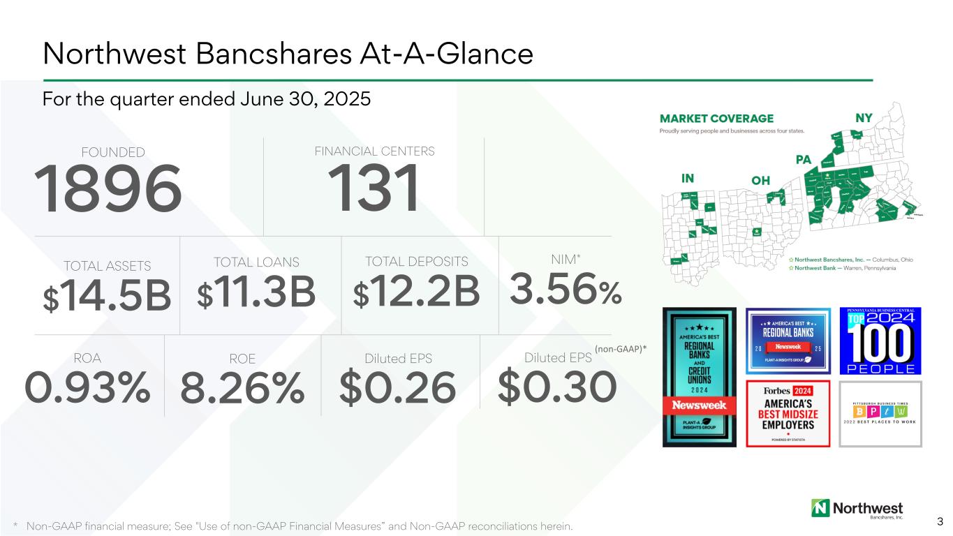 ノースウエスト・バンクシェアーズ2025年第2四半期の純利益3,400万ドルを発表,