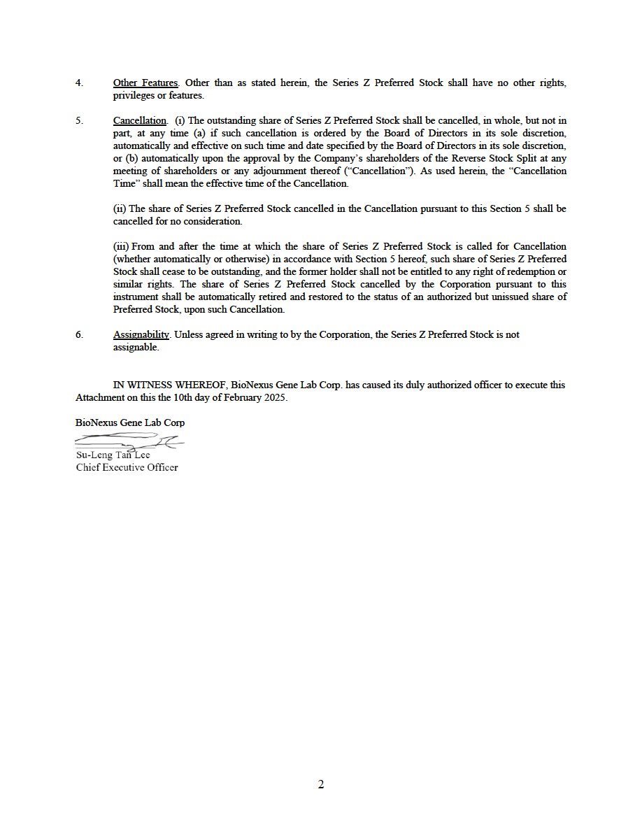 Other than as stated herein, the Series Z Preferred Stock has no other rights, privileges or features.