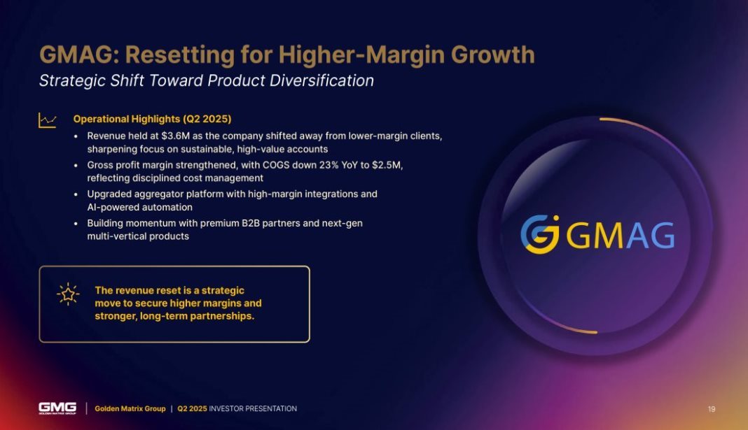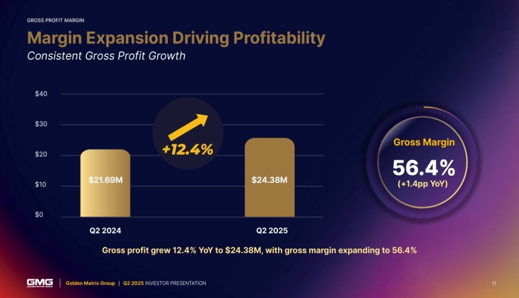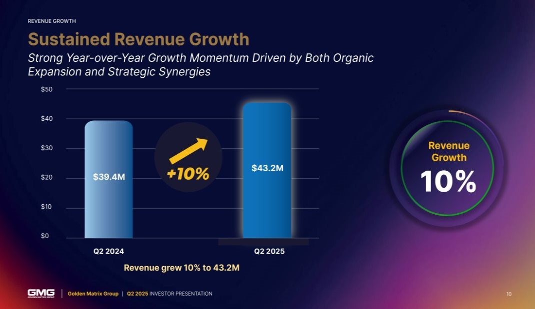 ゴールデン・マトリックスは、2025年通年の売上高を1億8,500万ドルから1億8,800万ドルの間と予想しており、これは2024年比で22%から24%の成長率を反映している。これは、第2四半期後半に欧州事業で経験した顧客に優しい結果の影響を反映したものです。欧州事業の7月の収益成長は予想通り回復し、前四半期比でも2024年比でも約25%増加しました(恒常為替レートベース)。これは予想された傾向への回帰であり、取引量と一致しています。