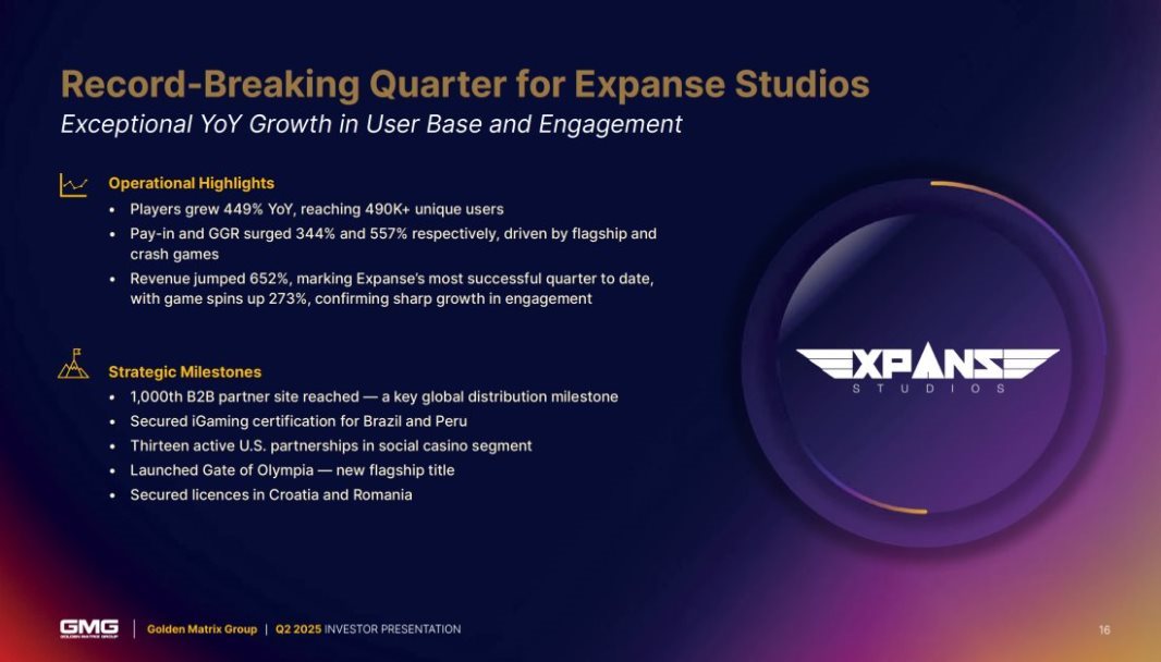 | · | エクスパンススタジオメリディアンベットの独自ゲーム開発部門は、米国のソーシャルカジノ分野で13のパートナーシップを確立し、1,000のB2Bパートナーのマイルストーンを超え、ブラジル、ペルー、クロアチア、ルーマニアでの認定を確保し、エキサイティングな新タイトル「Gates of Olympia」を発表しました。 |