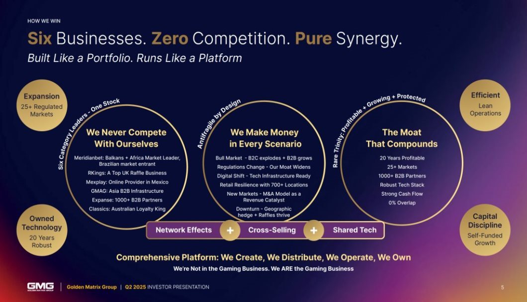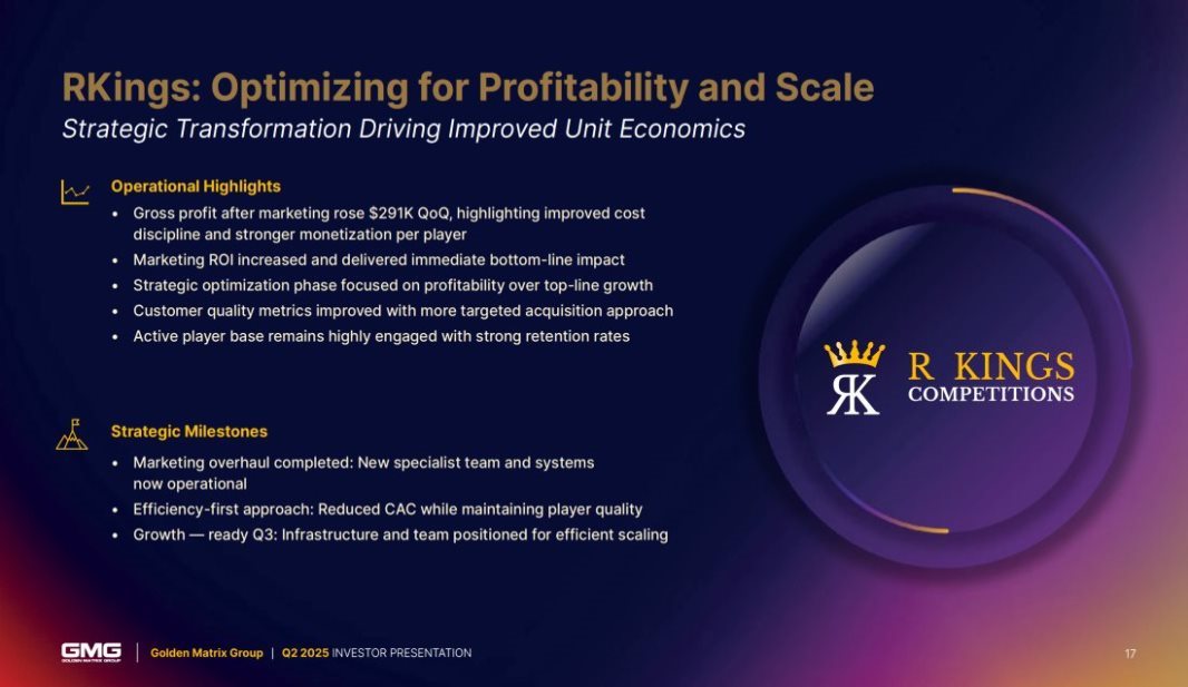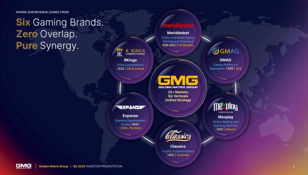 米国ラスベガスに本社を置くゴールデン・マトリックス・グループは、複数の国際市場で事業を展開するB2BおよびB2Cゲーミング・テクノロジー企業である。ゴールデンマトリックスのB2B部門は、幅広い顧客リスト向けに独自のゲーミング・プラットフォームを開発・ライセンス供与しており、B2C部門であるRKingsは、エンドユーザーが公認市場において独自のプラットフォームで有料大会に参加できるようにする大量のeコマース・サイトを運営している。また、メキシコで規制対象のオンラインカジノであるMEXPLAYを所有・運営している。