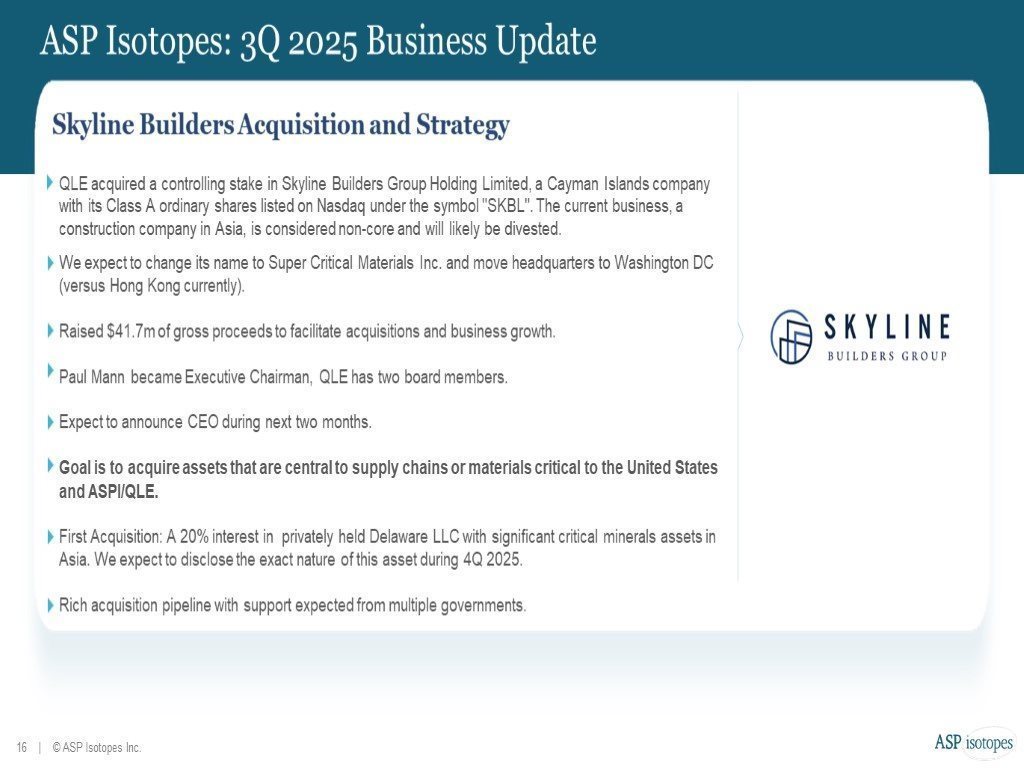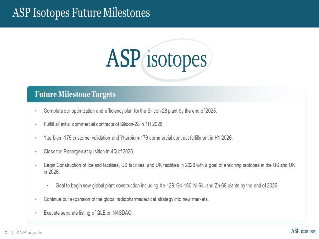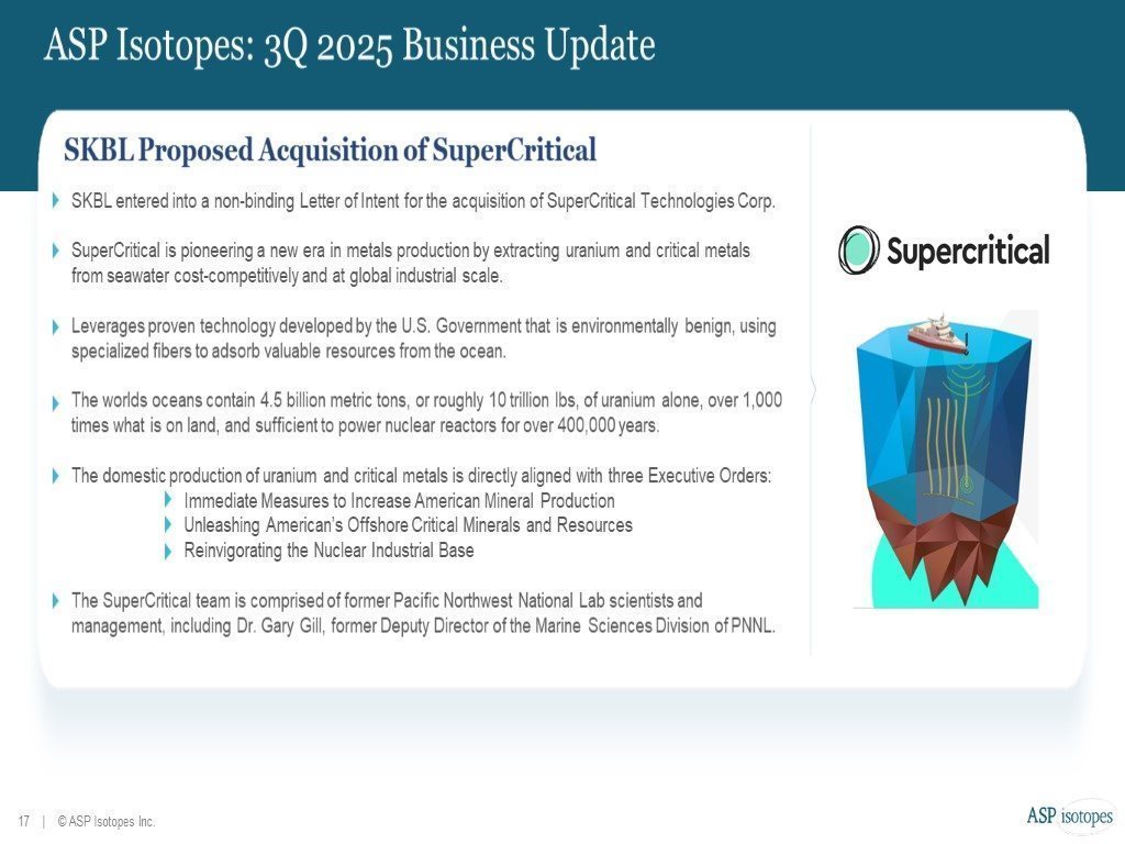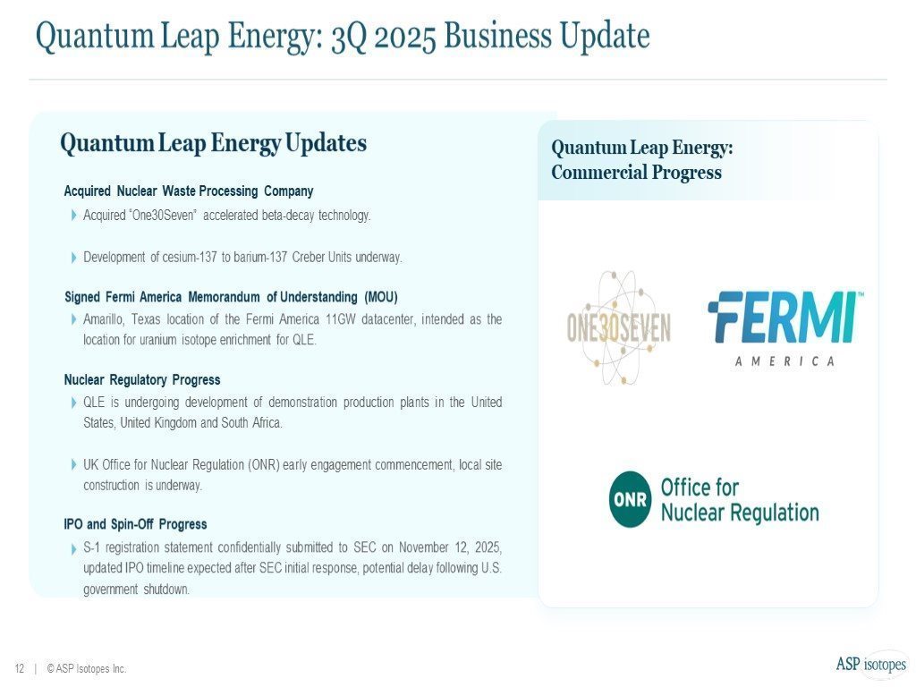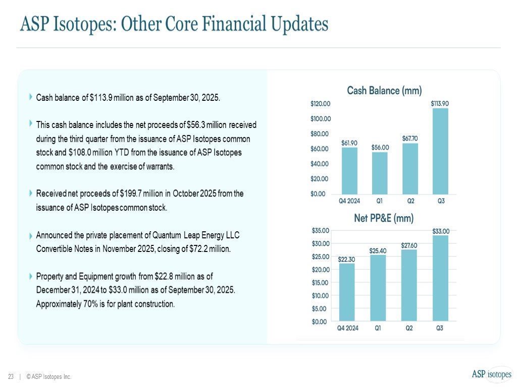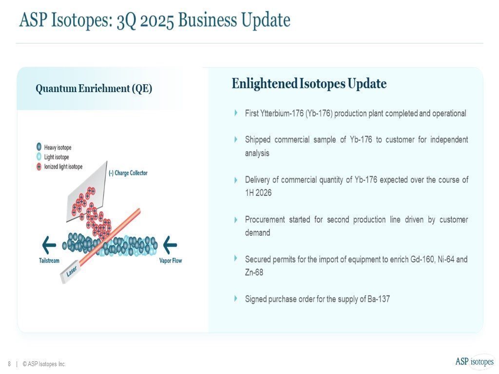 ASP Isotopes Inc. Third Quarter Update Call presentation dated as of November 2025. |