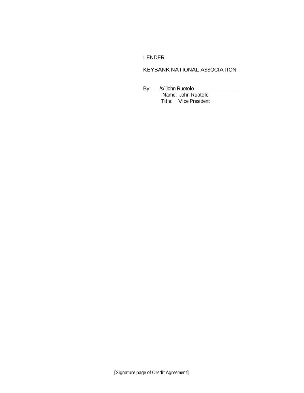 [Signature page of Credit Agreement] LENDER KEYBANK NATIONAL ASSOCIATION By: /s/ John Ruotolo Name: John Ruotolo Title: Vice President