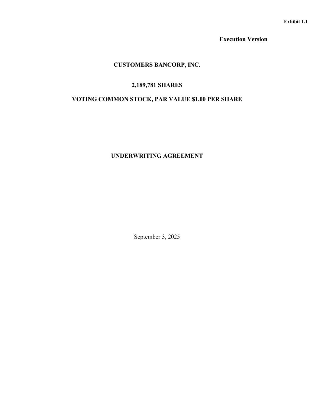 Exhibit 1.1 Execution Version CUSTOMERS BANCORP, INC. 2,189,781 SHARES VOTING COMMON STOCK, PAR VALUE $1.00 PER SHARE UNDERWRITING AGREEMENT September 3, 2025
