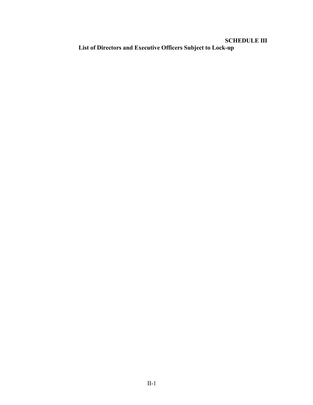 II-1 SCHEDULE III List of Directors and Executive Officers Subject to Lock-up