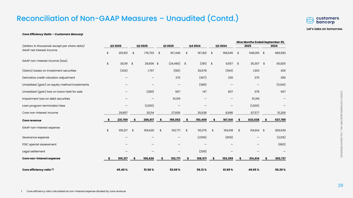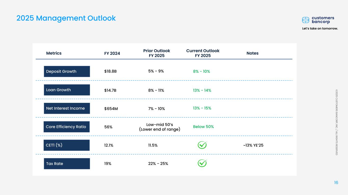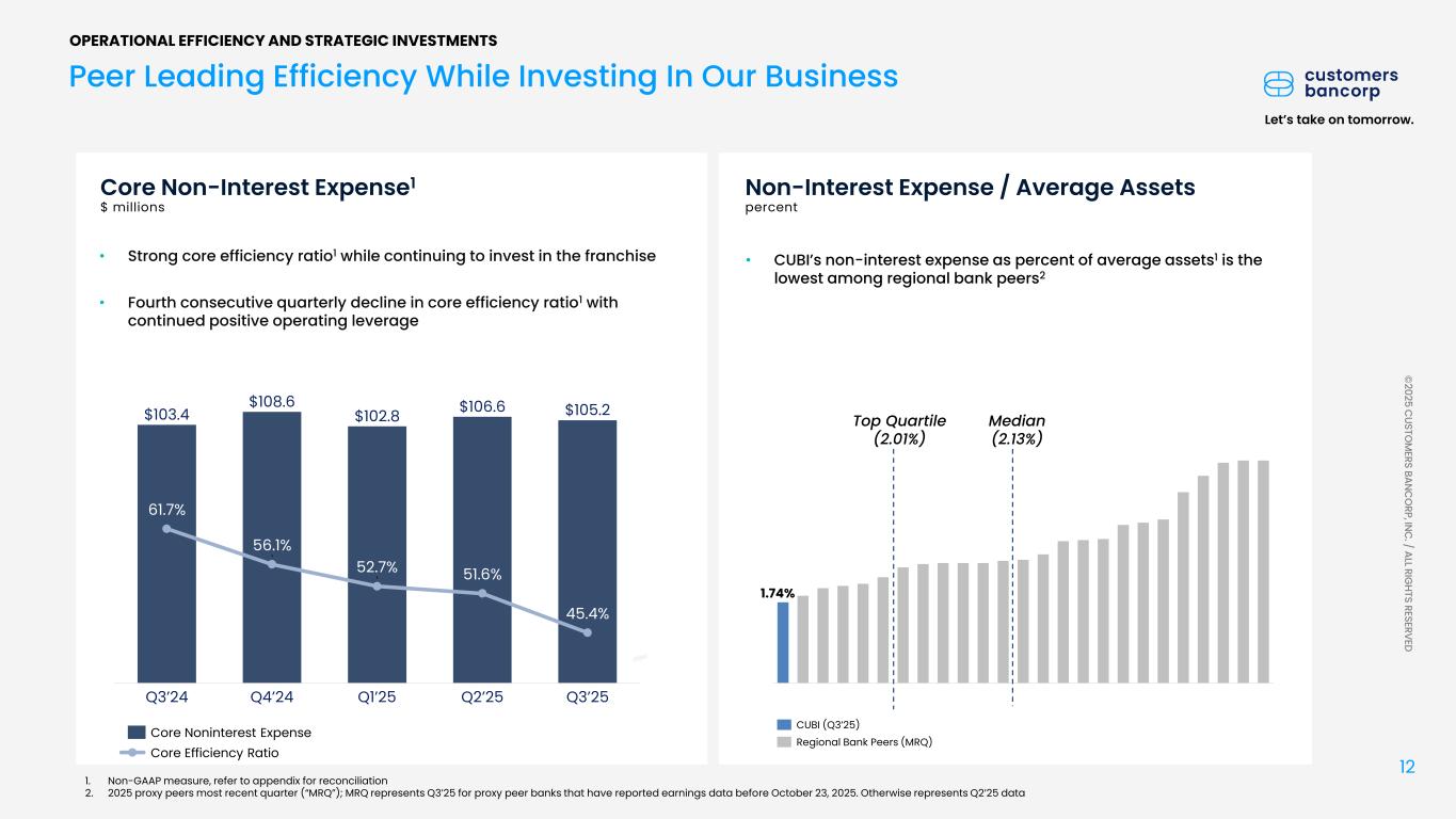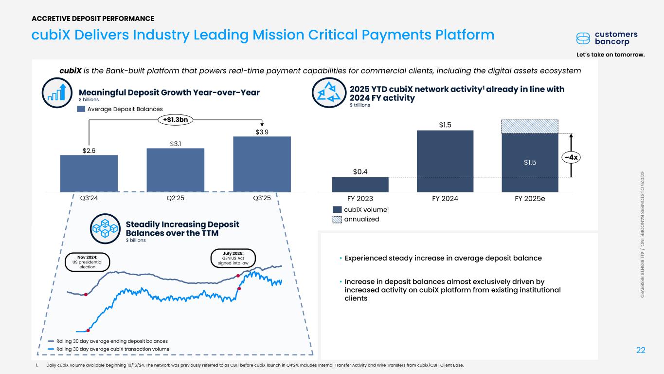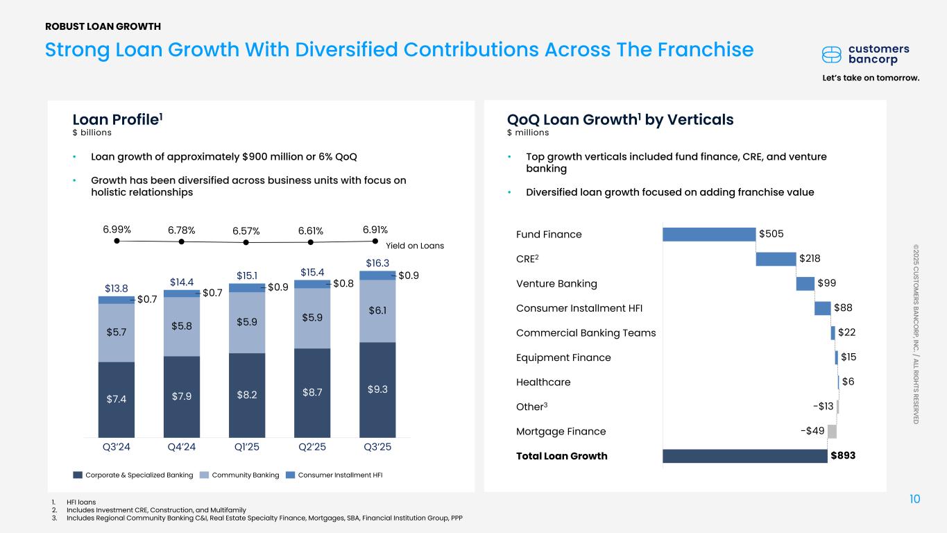 ペンシルベニア州ウェストレディング、2025年10月23日 - 「戦略的優先事項の継続的な実行を示すとともに、フランチャイズ価値の拡大における成功を強調する第3四半期決算に満足しています」と、カスタマーズ・バンコープのジェイ・シドゥ会長兼CEOは語った。
