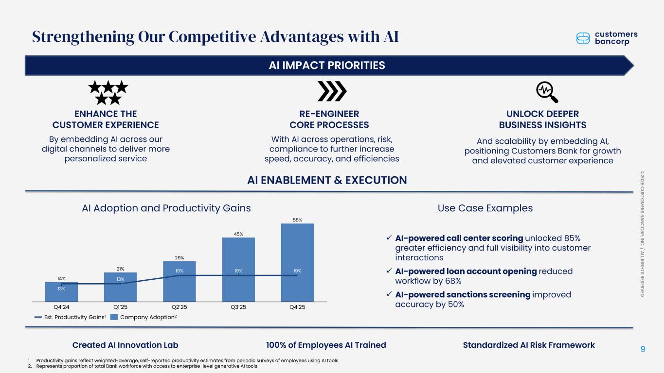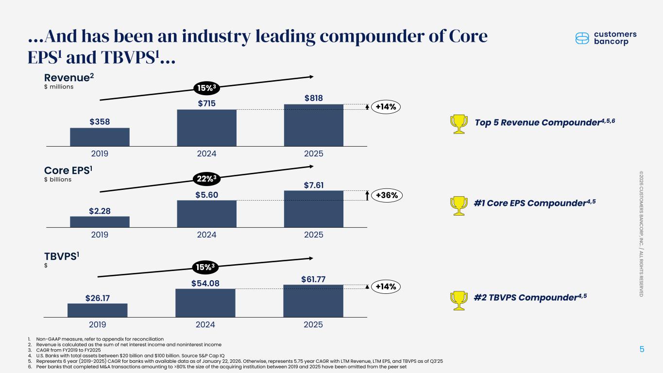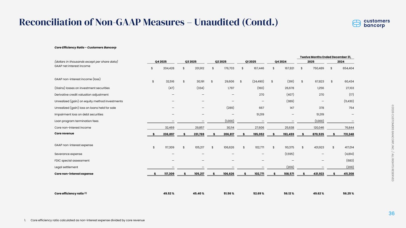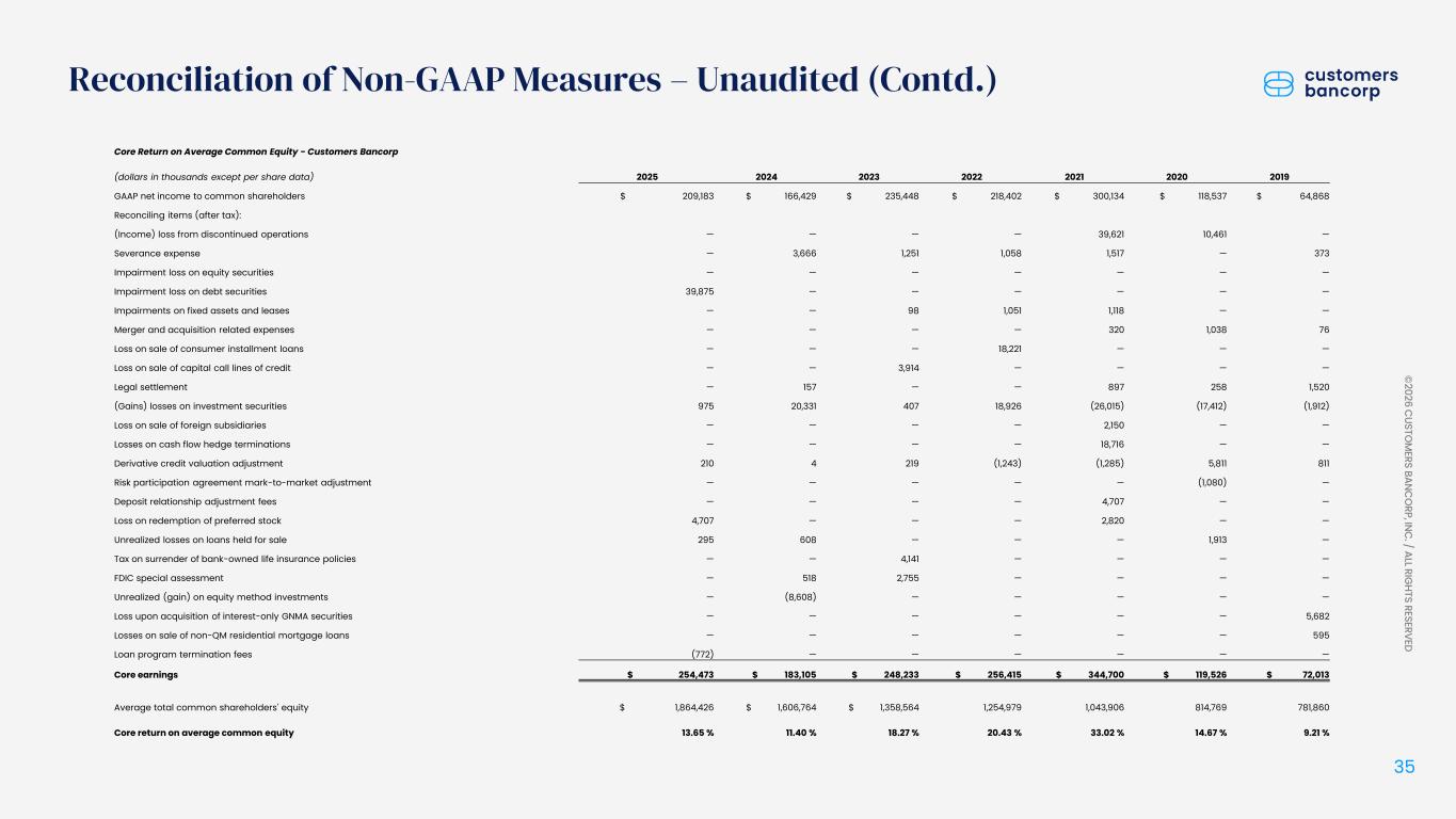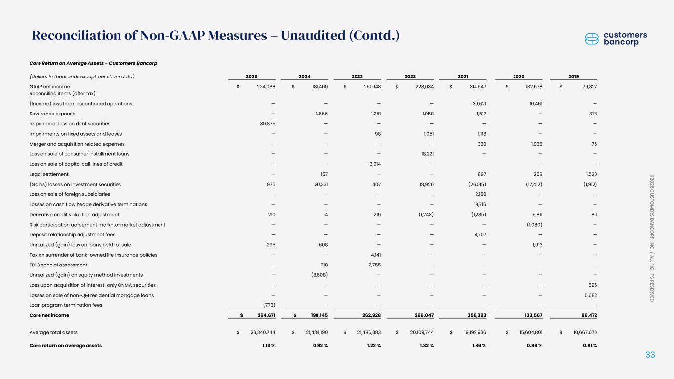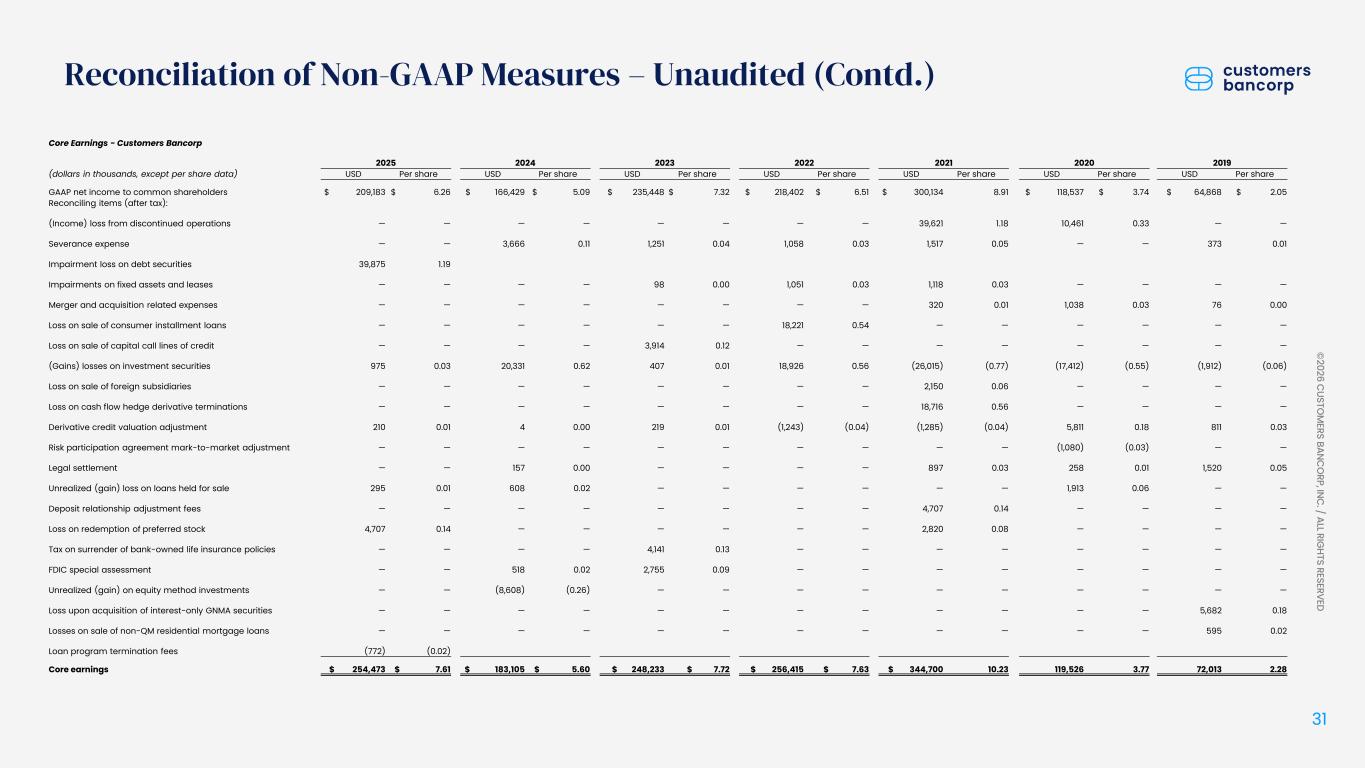 ペンシルベニア州ウェストレディング、2026年1月22日 - カスタマーズ・バンクコープのジェイ・シドゥ執行会長は次のように述べた。「第4四半期および通期の業績は、当社が戦略的優先事項を継続的に実行していることを示し、フランチャイズ価値の成長における成功を裏付けるものであり、満足している」