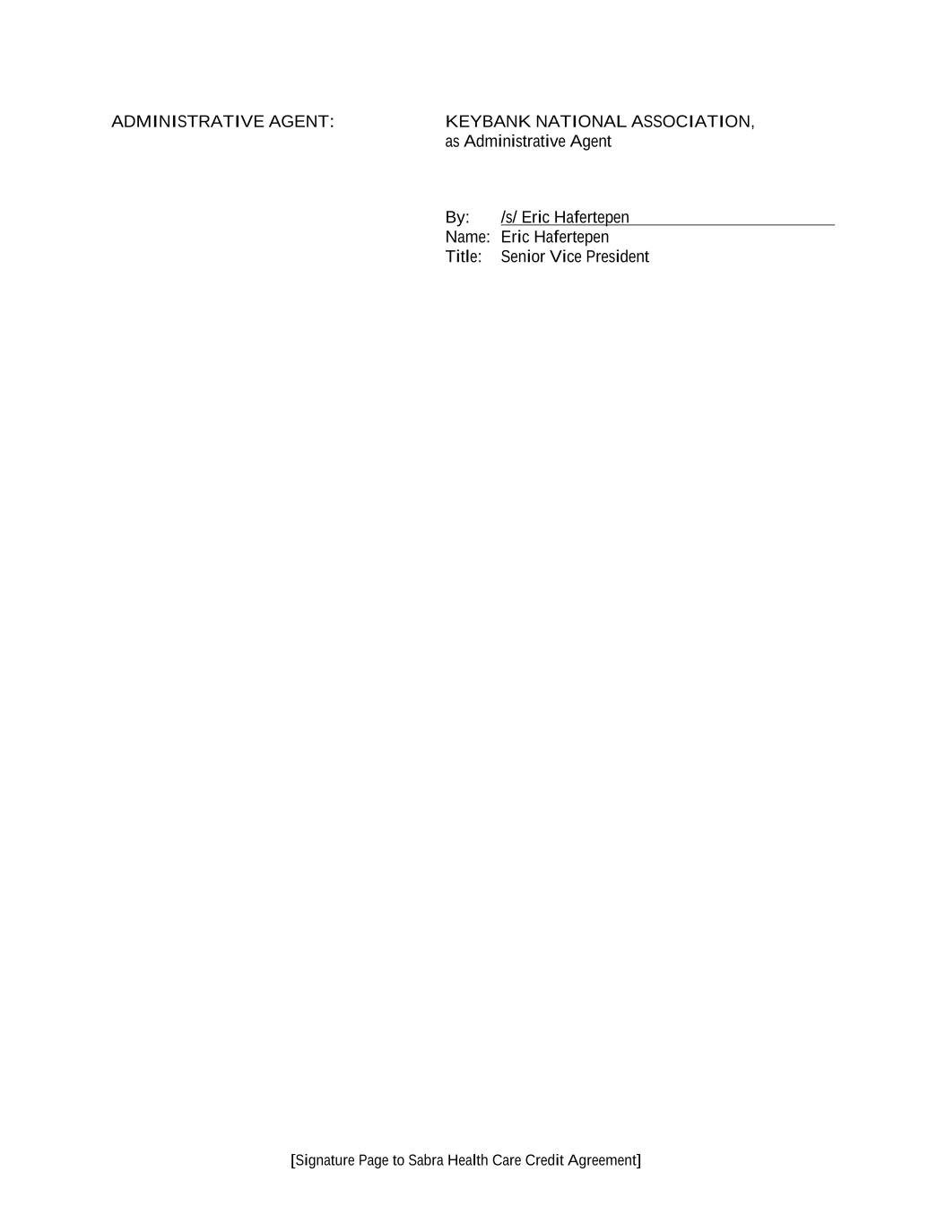 [Signature Page to Sabra Health Care Credit Agreement] ADMINISTRATIVE AGENT: KEYBANK NATIONAL ASSOCIATION, as Administrative Agent By: /s/ Eric Hafertepen Name: Eric Hafertepen Title: Senior Vice President