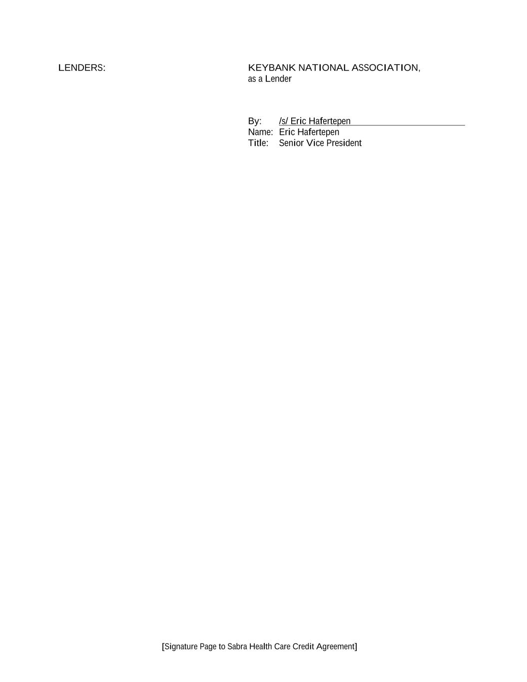 [Signature Page to Sabra Health Care Credit Agreement] LENDERS: KEYBANK NATIONAL ASSOCIATION, as a Lender By: /s/ Eric Hafertepen Name: Eric Hafertepen Title: Senior Vice President