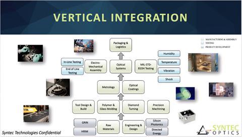 Syntec Optics believes that photon enabled technologies are more than just a trend. Syntec Optics goal is to deliver impactful solutions for optics and photonics enabled solutions globally. We believe that the innovative design for manufacturing of our optics and photonics enabling products is ideally suited for the demands of modern OEMs who rely on opto-electronics, light enabled devices, and intelligence that require high-precision and reliability. Ultimately, our vertically integrated advanced manufacturing platform offers our clients across several end markets competitively priced and disruptive light-enabled technologies and sub-systems.