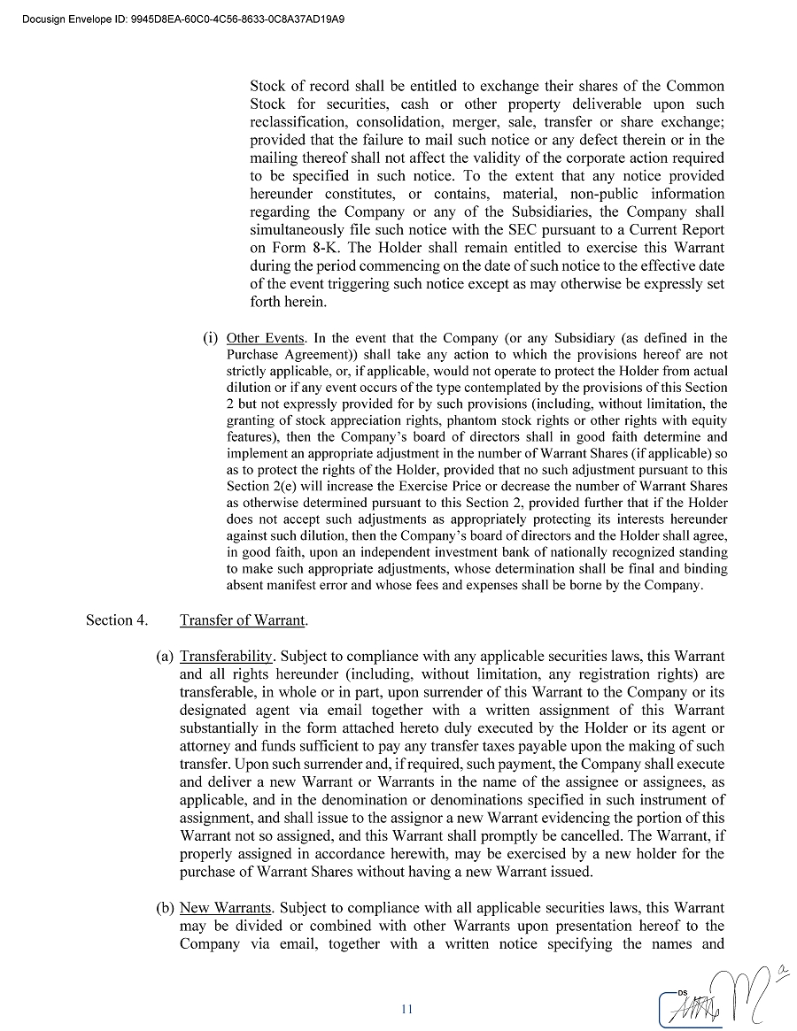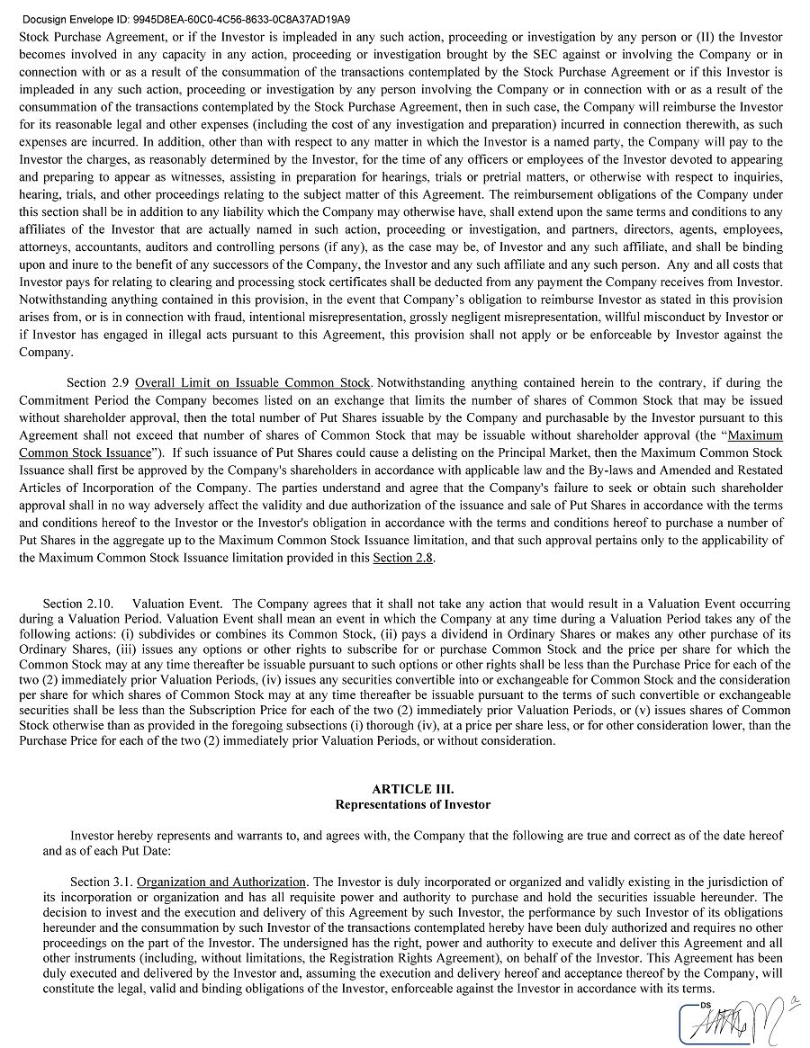 (iii) The conversion of convertible preferred stock or debt of the Company into Stock;