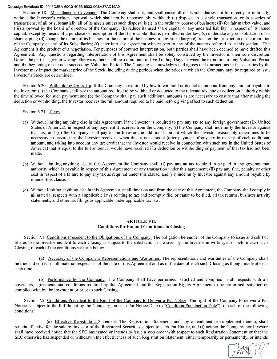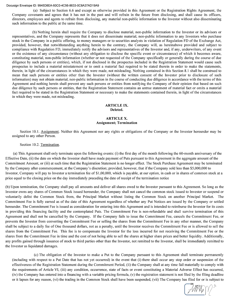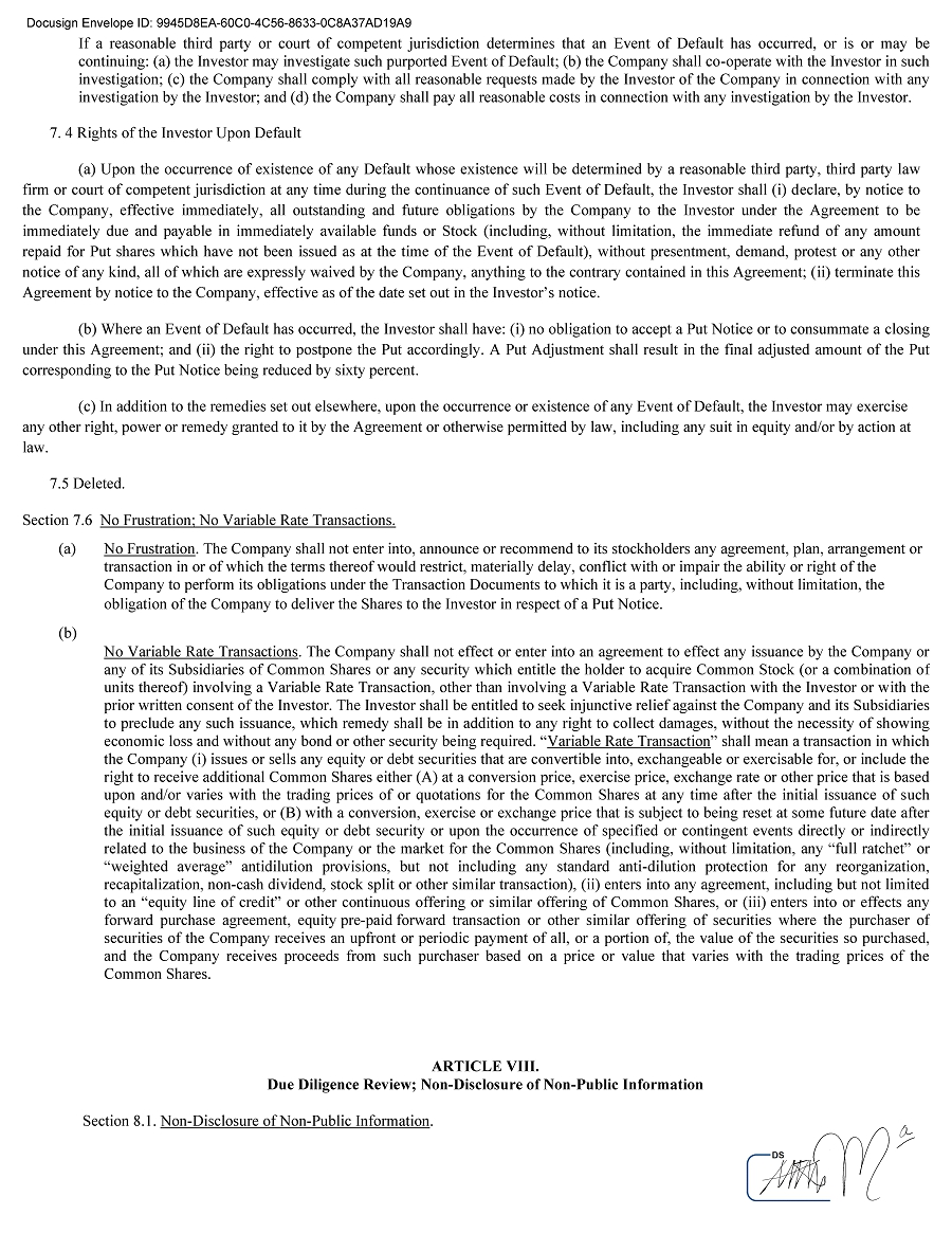 | ● | We need additional capital to, among other things, support and restart our operations, re-hire employees and pay our expenses. Such capital may not be available on commercially acceptable terms, if at all. If we do not receive the additional capital, we may be forced to curtail or abandon our plans to recommence our operations and we may need to permanently cease our operations. |