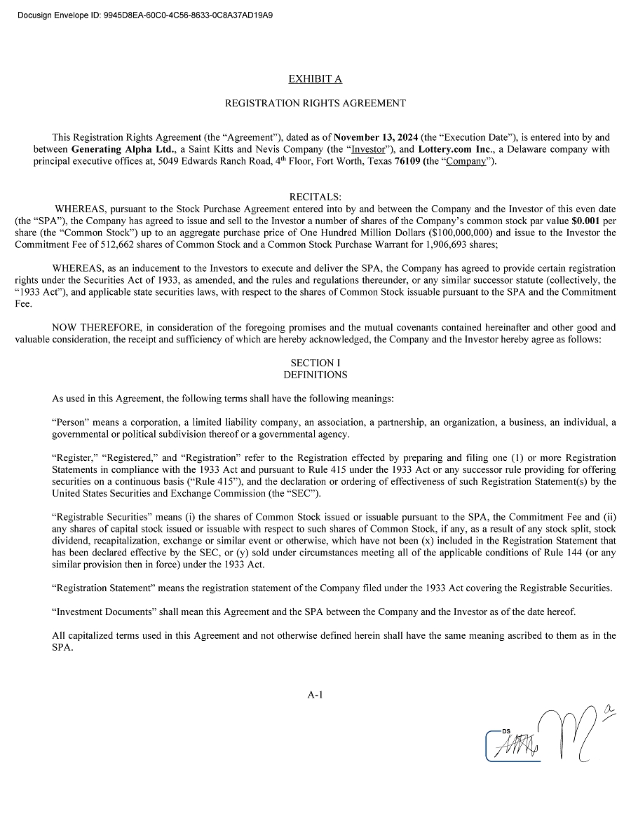 Forward-looking statements are based on the current expectations of the management of Lottery.com and are inherently subject to uncertainties and changes in circumstances and their potential effects and speak only as of the date of such statement. There can be no assurance that future developments will be those that have been anticipated. These forward-looking statements involve a number of risks, uncertainties or other assumptions that may cause actual results or performance to be materially different from those expressed or implied by these forward-looking statements. These risks and uncertainties include, but are not limited to, those factors discussed and identified in the section entitled “Risk Factors” in our Annual Report on Form 10-K/A for the year ended December 31, 2023 (the Amended “Annual Report”) which was filed on May 20, 2024 and in this Report, as such factors may be updated in our periodic reports filed with the Securities and Exchange Commission (the “SEC”), as well as the following: