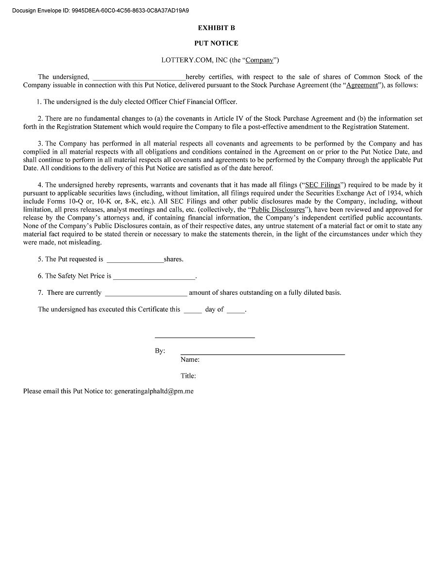 This Quarterly Report on Form 10Q (this “Report”) contains forward-looking statements within the meaning of Section 27A of the Securities Act of 1933, as amended (the “Securities Act”) and Section 21E of the Securities Exchange Act of 1934, as amended (the “Exchange Act”), including statements about the financial condition, results of operations, earnings outlook and prospects of Lottery.com Inc. (“Lottery.com”, the “Company”, “we” or “us”). Forward-looking statements appear in a number of places in this Report, including, without limitation, under the heading in Part I, “Item 2. Management’s Discussion and Analysis of Financial Condition and Results of Operations.” In addition, any statements that refer to projections, forecasts or other characterizations of future events or circumstances, including any underlying assumptions, are forward-looking statements. Forward-looking statements are typically identified by words such as “plan,” “believe,” “expect,” “anticipate,” “intend,” “outlook,” “estimate,” “forecast,” “project,” “continue,” “could,” “may,” “might,” “possible,” “potential,” “predict,” “should,” “would” and other similar words and expressions, but the absence of these words does not mean that a statement is not forward-looking.