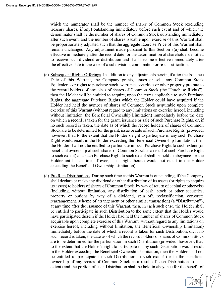 (b) Prohibited Adjustment. If any such adjustment provided for in this Section 9 requires the approval of stockholders in order to enable the Company to grant or amend Options, then no such adjustment will be made without the required stockholder approval. Notwithstanding the foregoing, if the effect of any such adjustment would be to cause an Incentive Option to fail to continue to qualify under Section 422 of the Code or to cause a modification, extension or renewal of such stock option within the meaning described in Section 424 of the Code, the Committee may elect that such adjustment not be made but rather shall use reasonable efforts to effect such other adjustment of each then outstanding Option as the Committee, in its sole discretion, shall deem equitable and which will not result in any disqualification, modification, extension or renewal (within the meaning of Section 424 of the Code) of such Incentive Option.