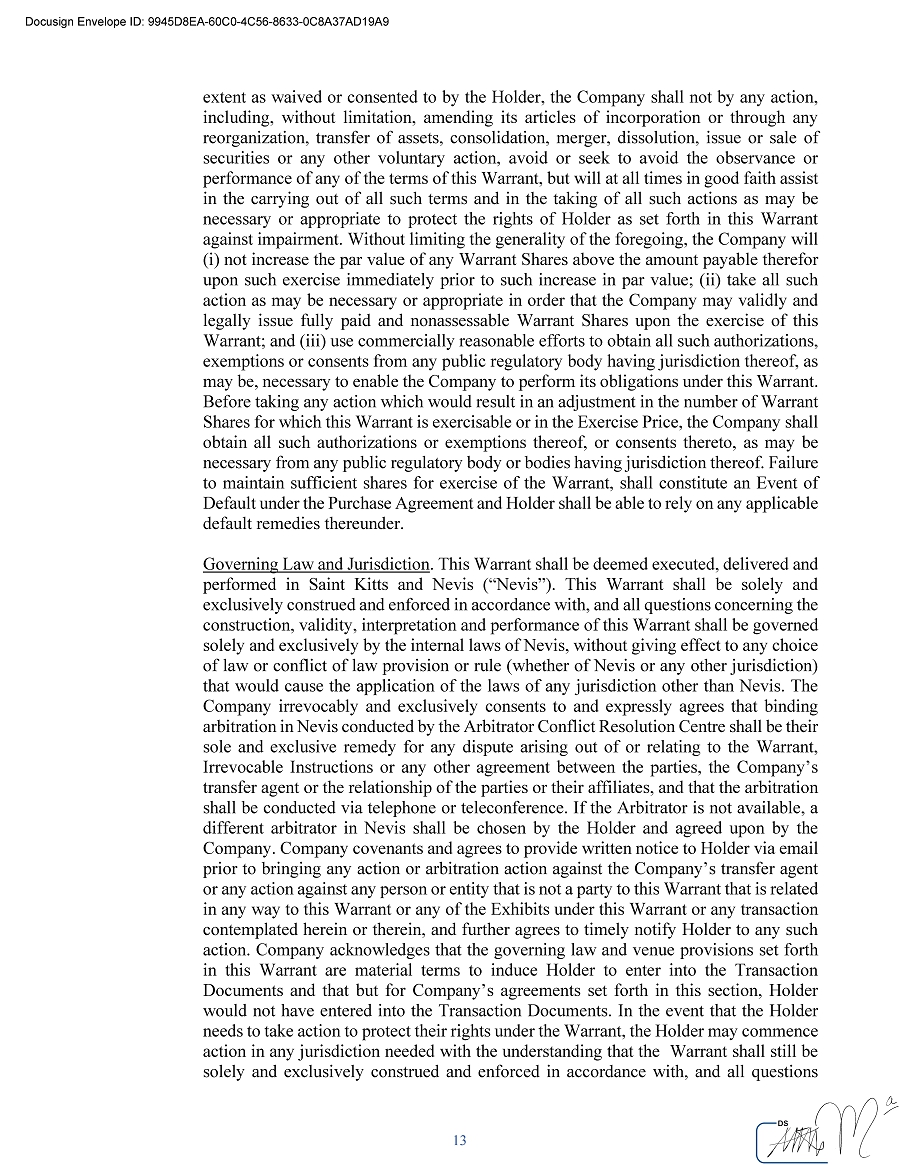 (c) Plan Subject to Delaware Law. All questions arising with respect to the provisions of the Plan will be determined by application of the Code and the laws of the state of Delaware except to the extent that Nevada laws are preempted by any federal law.