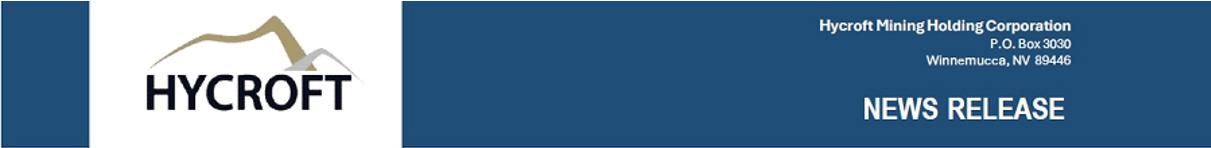 This news release may contain “forward-looking statements” within the meaning of Section 27A of the Securities Act of 1933, as amended, and Section 21E of the Securities Exchange Act of 1934, as amended, which are intended to be covered by the safe harbor created by such sections and other applicable laws. Such forward-looking statements may include, without limitation, estimates and expectations of future production, reserve estimates, exploration outlook and expected expenditure, and operational and financial performance. The exploration target does not represent, and should not be construed to be, an estimate of a mineral resource or mineral reserve, as ranges of potential tonnage and grade (or quality) of the exploration target are conceptual in nature; there has been insufficient exploration of the relevant property or properties to estimate a mineral resource; and it is uncertain if further exploration will result in the estimation of a mineral resource. Where the Company expresses or implies an expectation or belief as to future events or results, such expectation or belief is expressed in good faith and believed to have a reasonable basis. However, such statements are subject to risks, uncertainties, assumptions and other factors, which could cause actual results to differ materially from future results expressed or implied by the “forward-looking statements”. Such assumptions, include, but are not limited to the key assumptions set forth on page 4 hereof. Investors are also encouraged to refer to the Company’s Form 10-K for its fiscal year 2023, filed with the SEC on March 14, 2024 , as updated by Form 10-Q for the quarterly periods ended March 31, 2024 , June 30, 2024 , and September 30, 2024 , filed with the SEC on May 7, 2024 , August 6, 2024 , and November 5, 2024 , respectively, as well as Hycroft’s other SEC filings for additional information. The Company does not undertake any obligation to release publicly revisions to any “forward-looking statement,” including, without limitation, outlook, to reflect events or circumstances after the date of this news release, or to reflect the occurrence of unanticipated events, except as may be required under applicable securities laws. Investors should not assume that any lack of update to a previously issued “forward-looking statement” constitutes a reaffirmation of that statement. Continued reliance on “forward-looking statements” is at investors’ own risk.