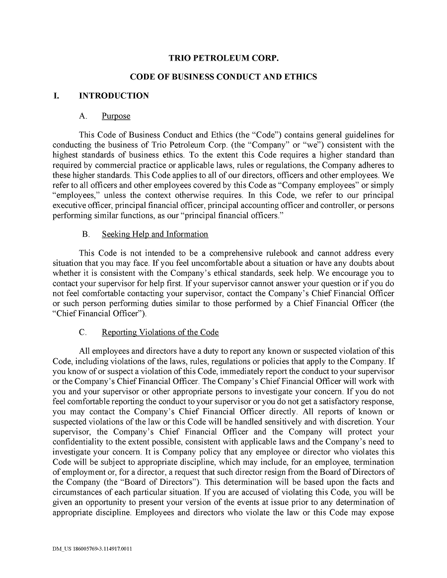 TRIO PETROLEUM CORP.