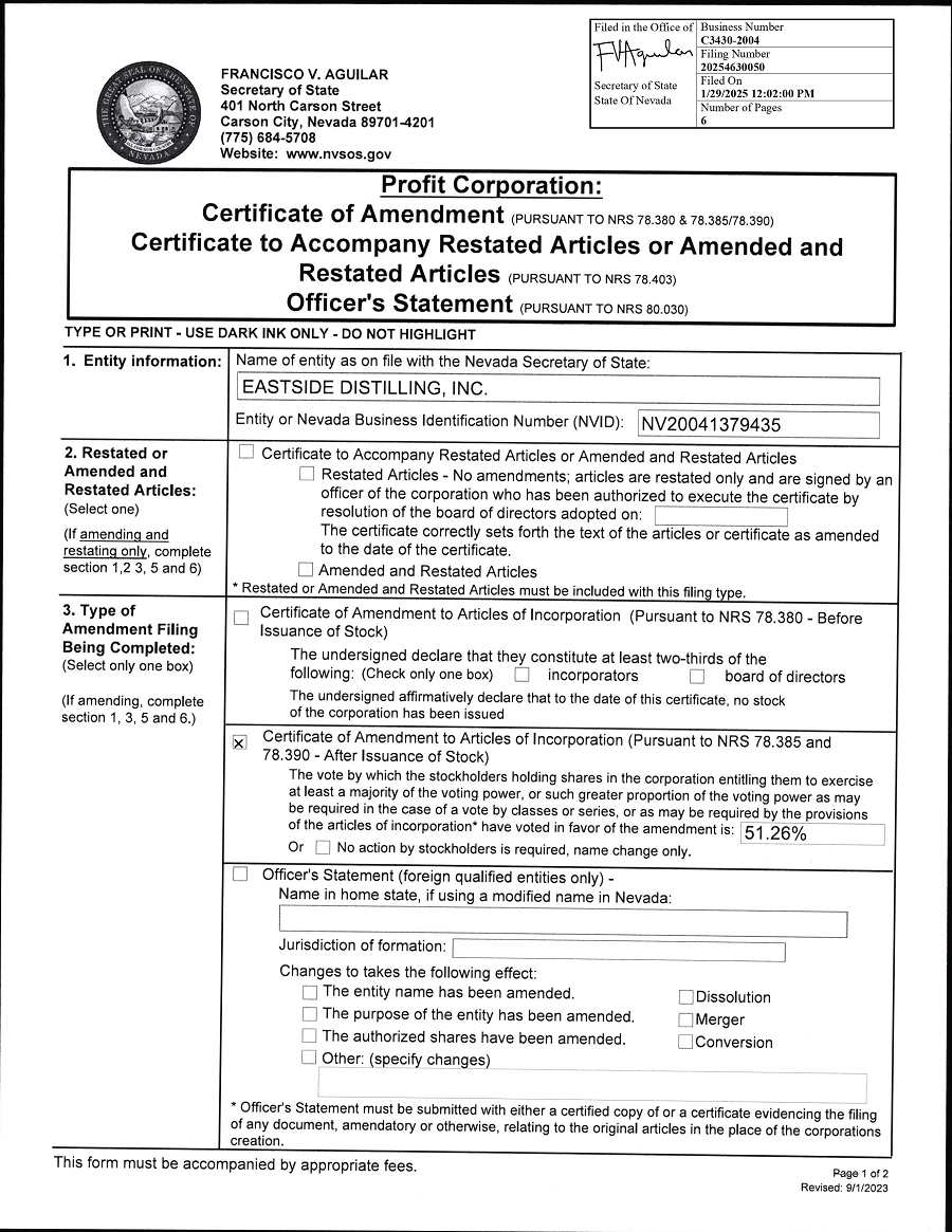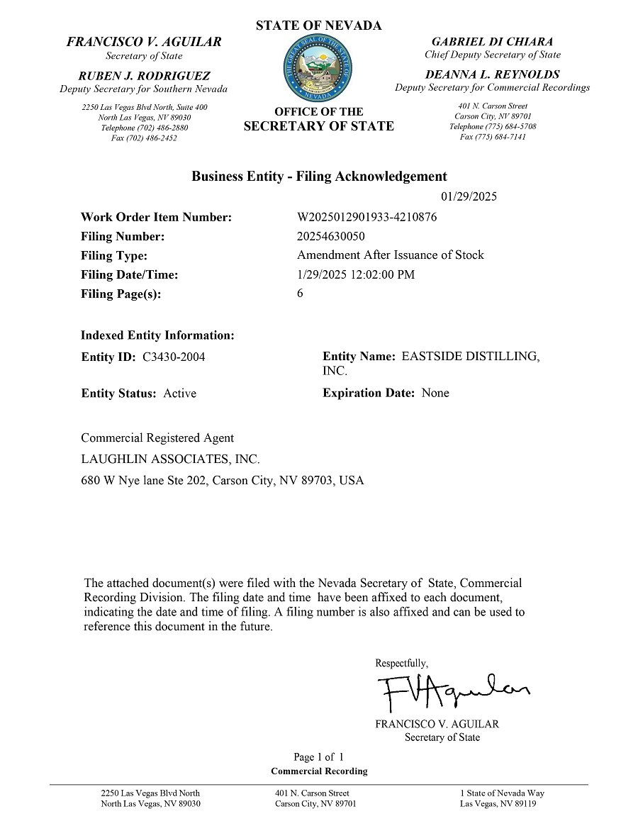 | Eastside Distilling, Inc. | ||