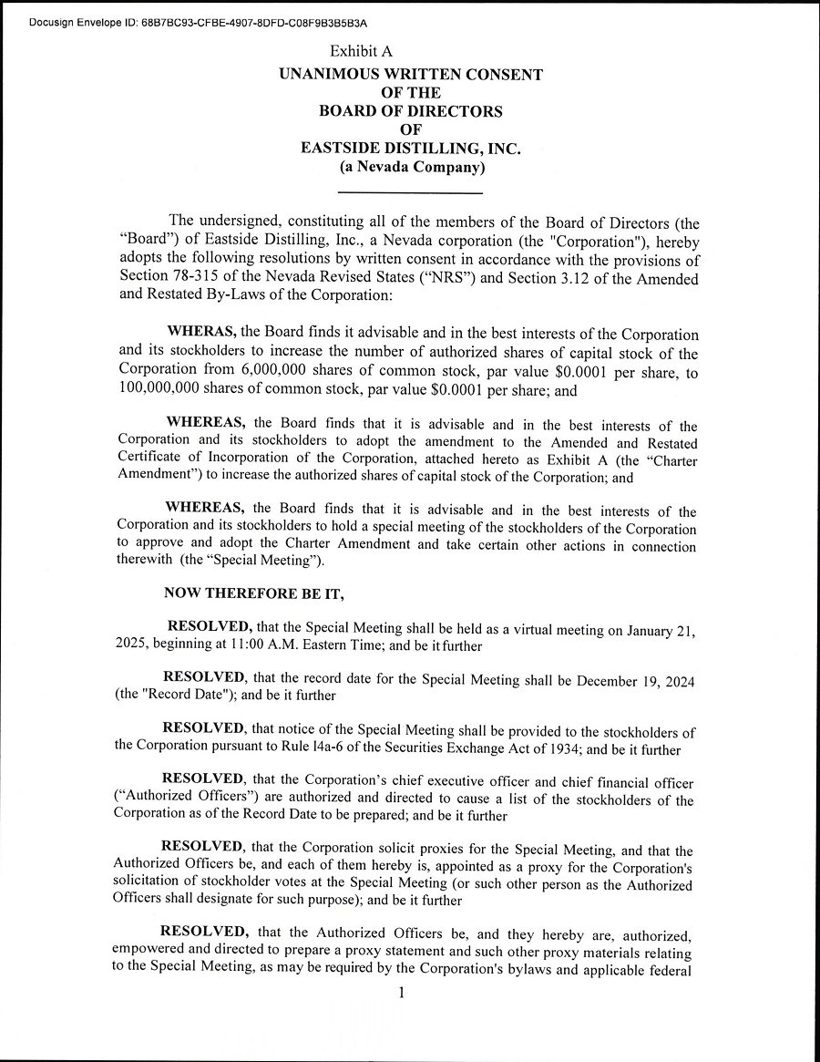Providence, Rhode Island, January 28, 2025 - Beeline Holdings (NASDAQ: BLNE) which also operates as Eastside Distilling, Inc. announces results of the Special Shareholders Meeting held on Monday, January 27, 2025.