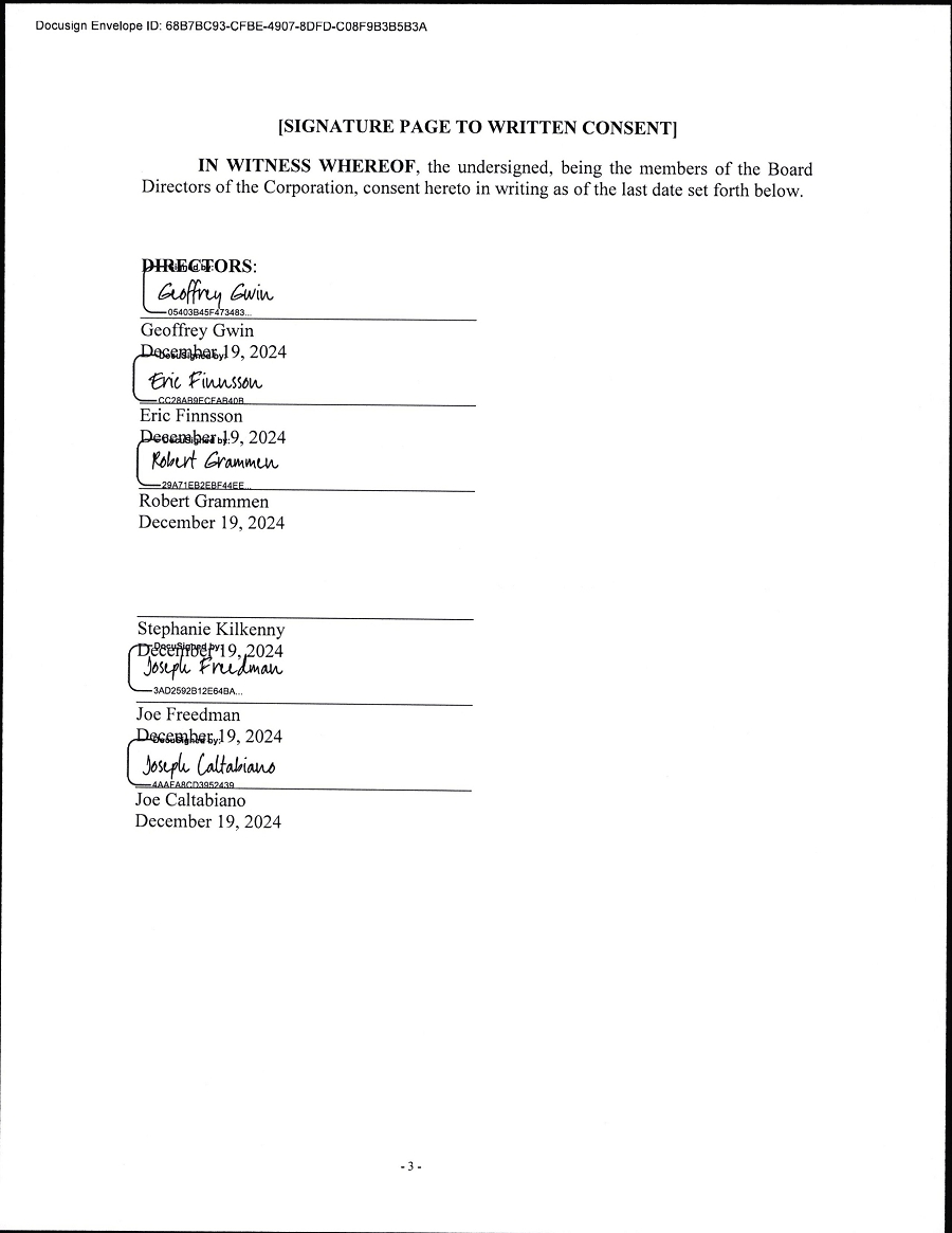 Certain matters discussed in this press release may be forward-looking statements that reflect our expectations or anticipations rather than historical fact. Such matters involve risks and uncertainties that may cause actual results to differ materially, including the following: changes in economic conditions, general competitive factors, the Company’s ongoing financing requirements and ability to achieve financing, acceptance of the Company’s products in the market, the Company’s success in obtaining new customers, the Company’s ability to execute its business model and strategic plans, and other risks and related information described from time to time in the Company’s filings with the Securities and Exchange Commission (“SEC”). A detailed discussion of the most significant risks can be found in the “Risk Factors” section of the Company’s Annual Report on Form 10-K for the fiscal year ended December 31, 2023, and the Company’s Current Report on Form 8-K filed with the SEC on November 21, 2024 and the Company’s Current Report on Form 8K/A filed with the SEC on Form 8-K/A on December 19, 2024. The Company assumes no obligation to update the cautionary information in this press release.