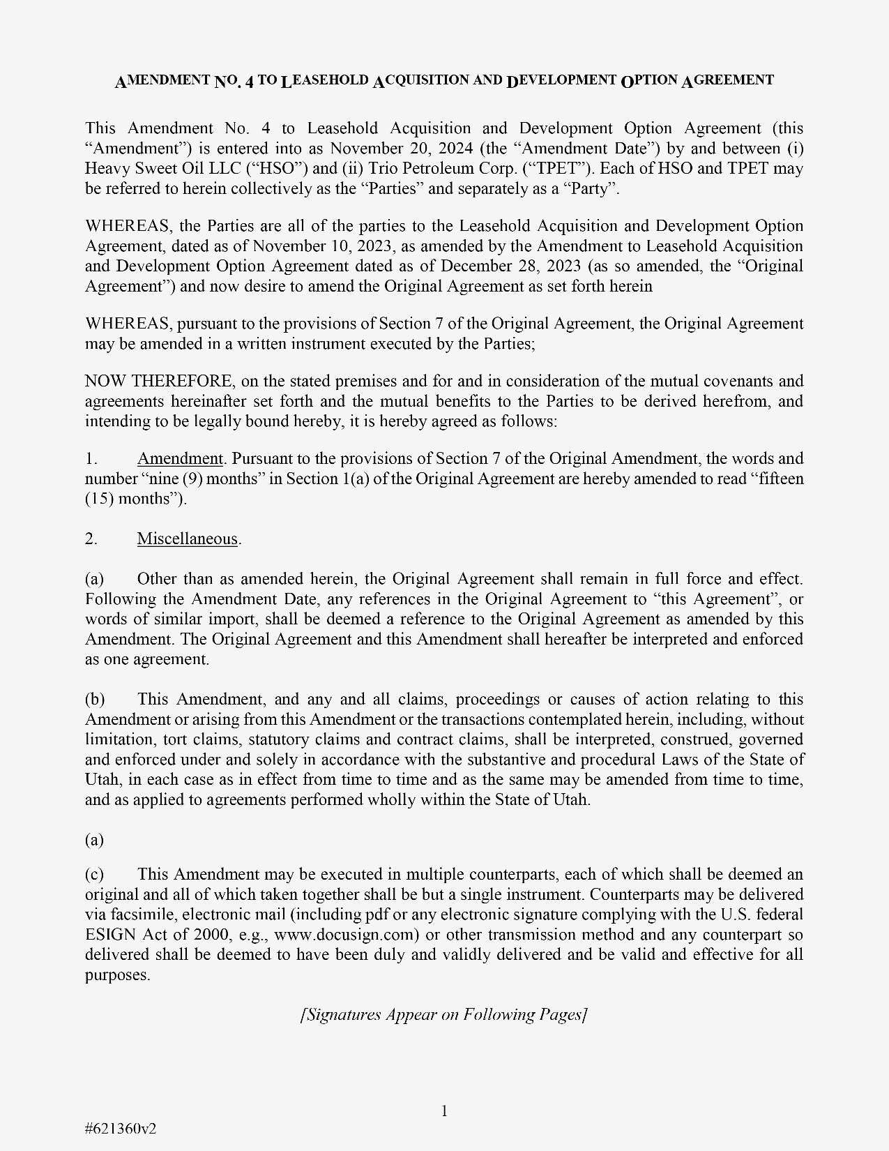 | 10.1 | Amendment No. 4 to Leasehold Acquisition and Development Option Agreement, dated as of [__]. 2024 | |