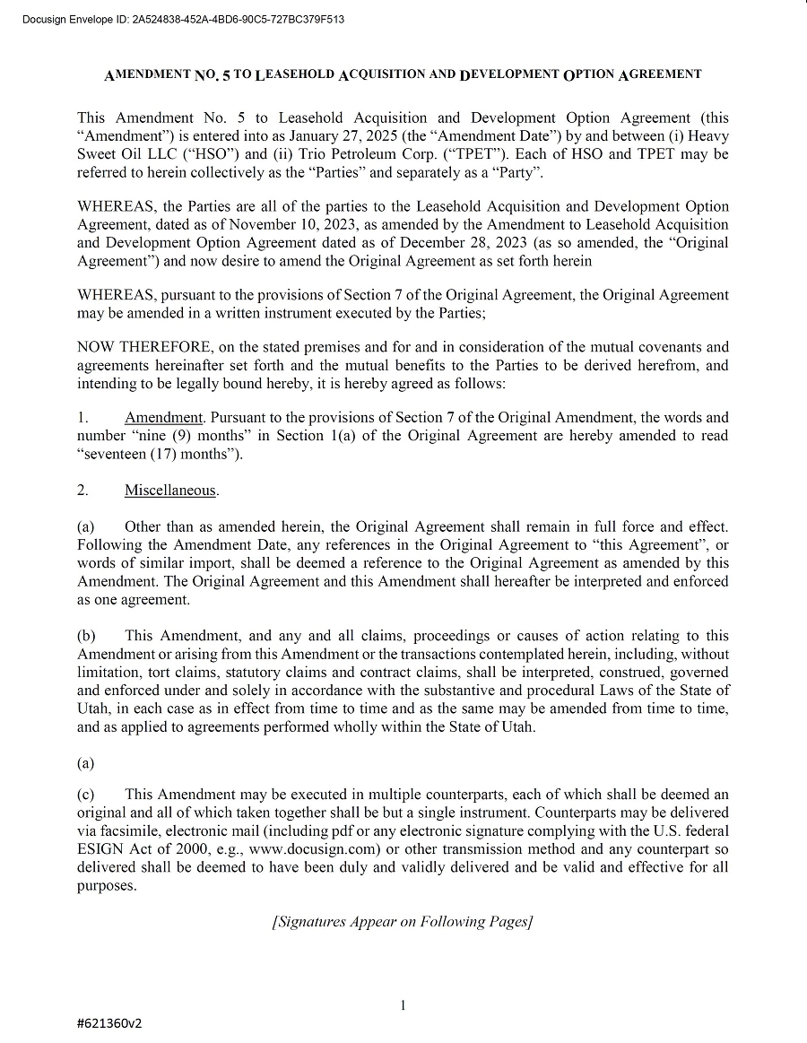 | 10.2 | Amendment No. 5 to Leasehold Acquisition and Development Option Agreement, dated as of January 27, 2025. | |
