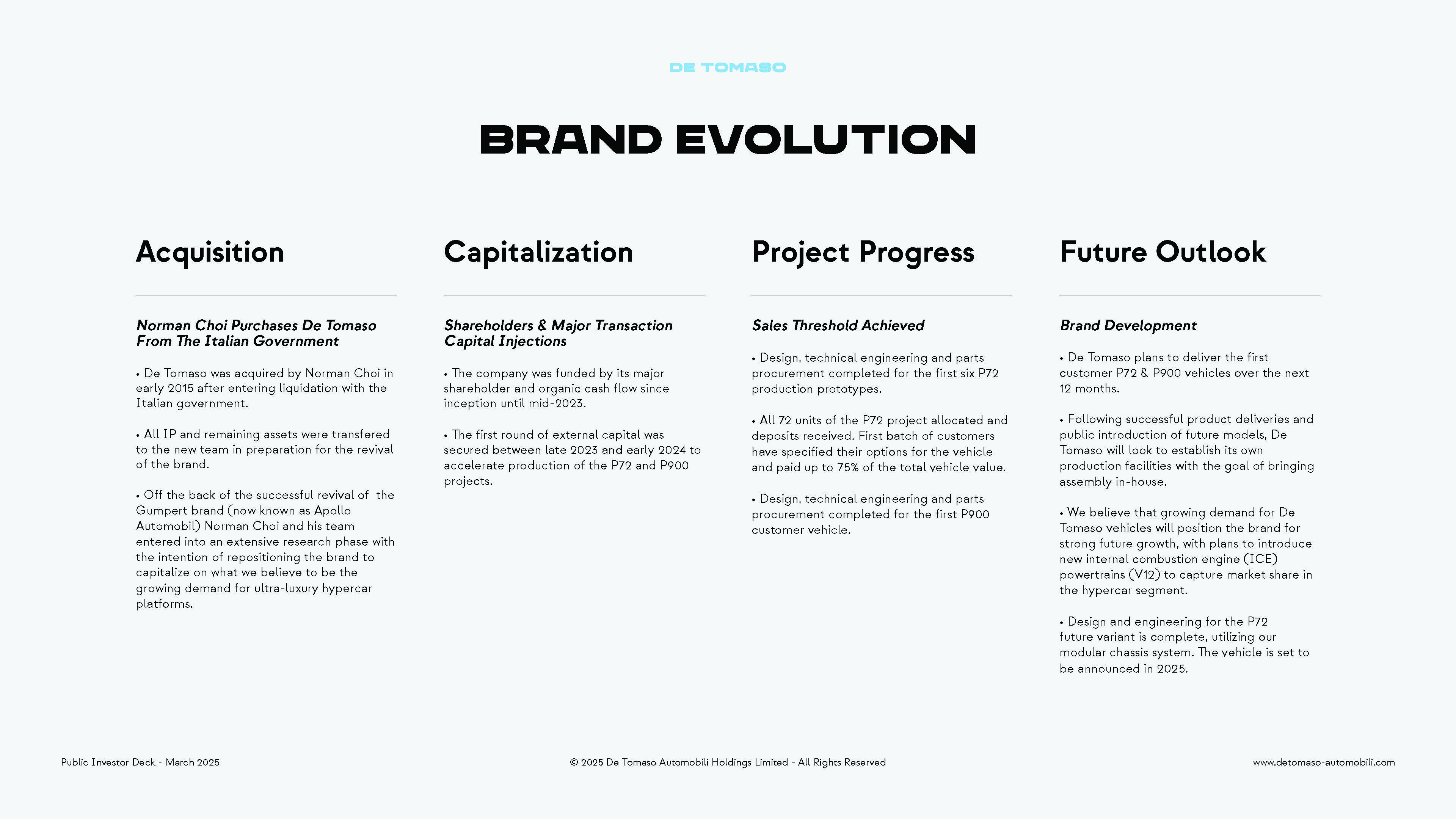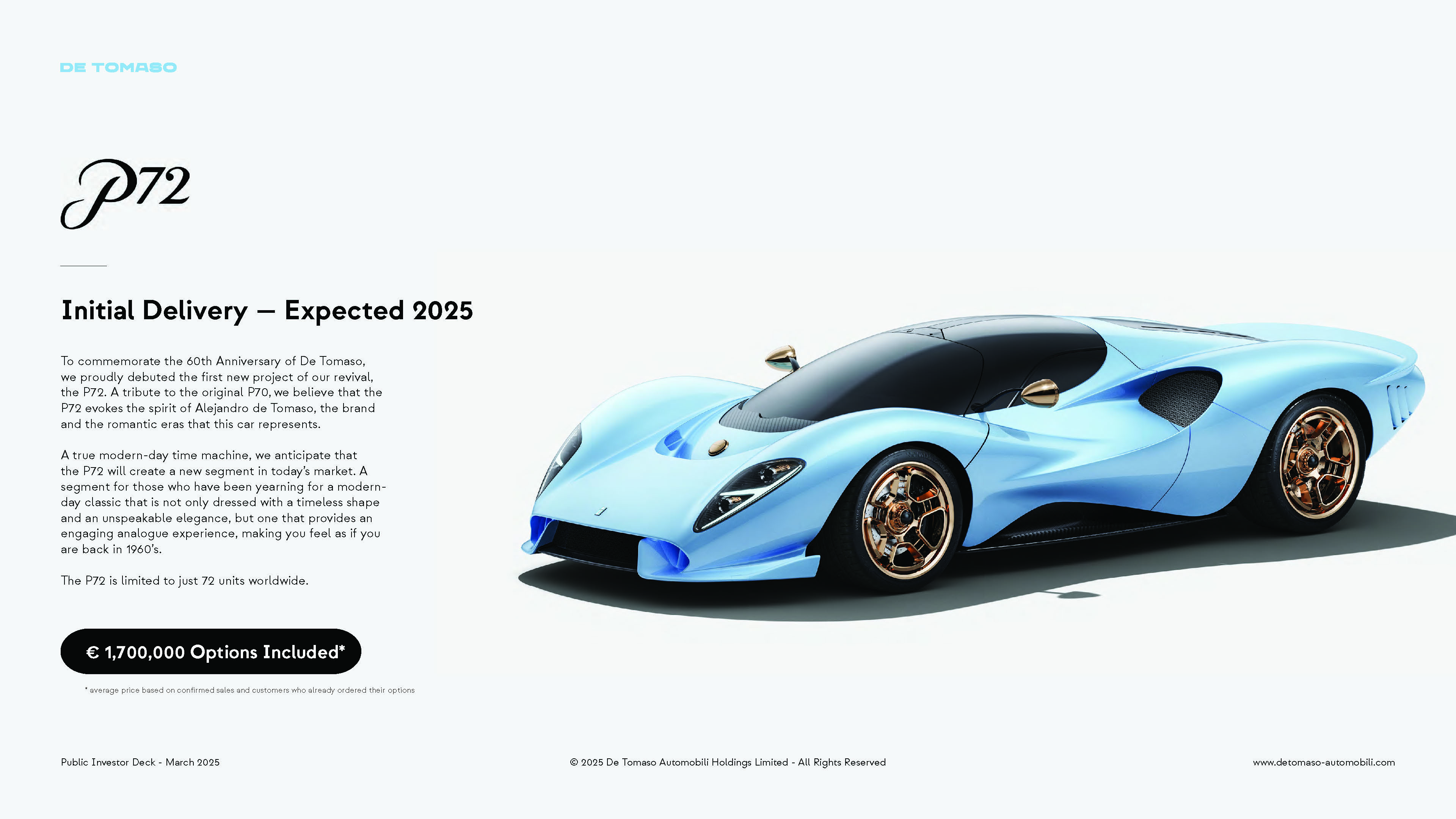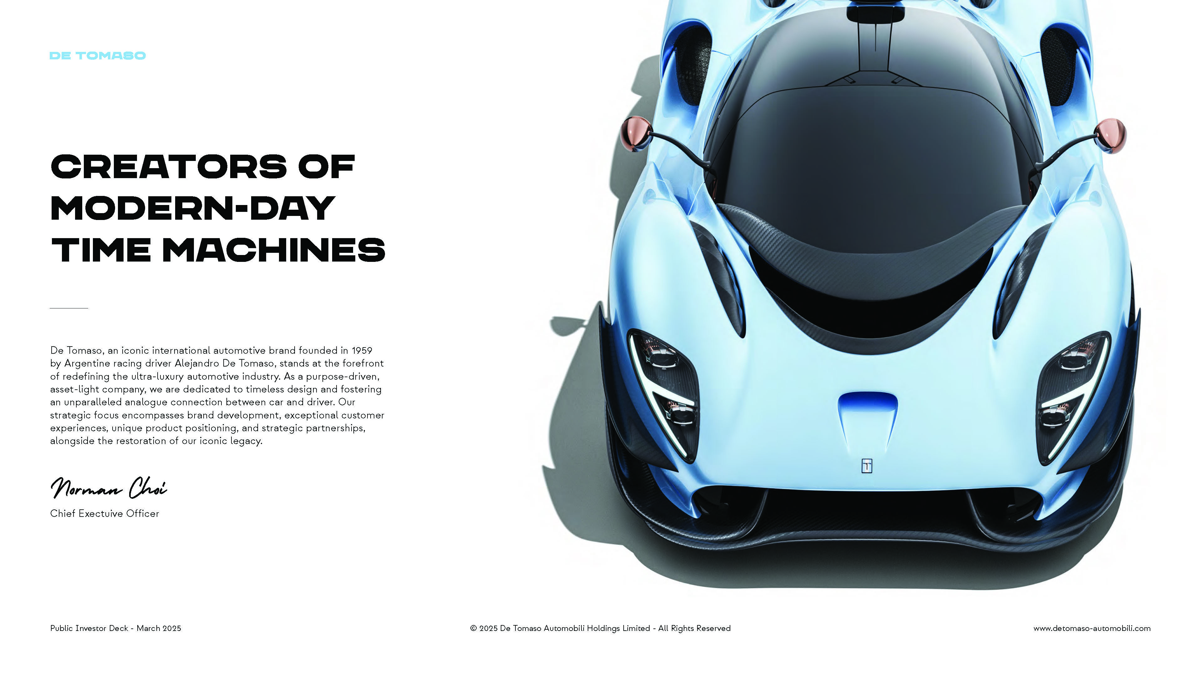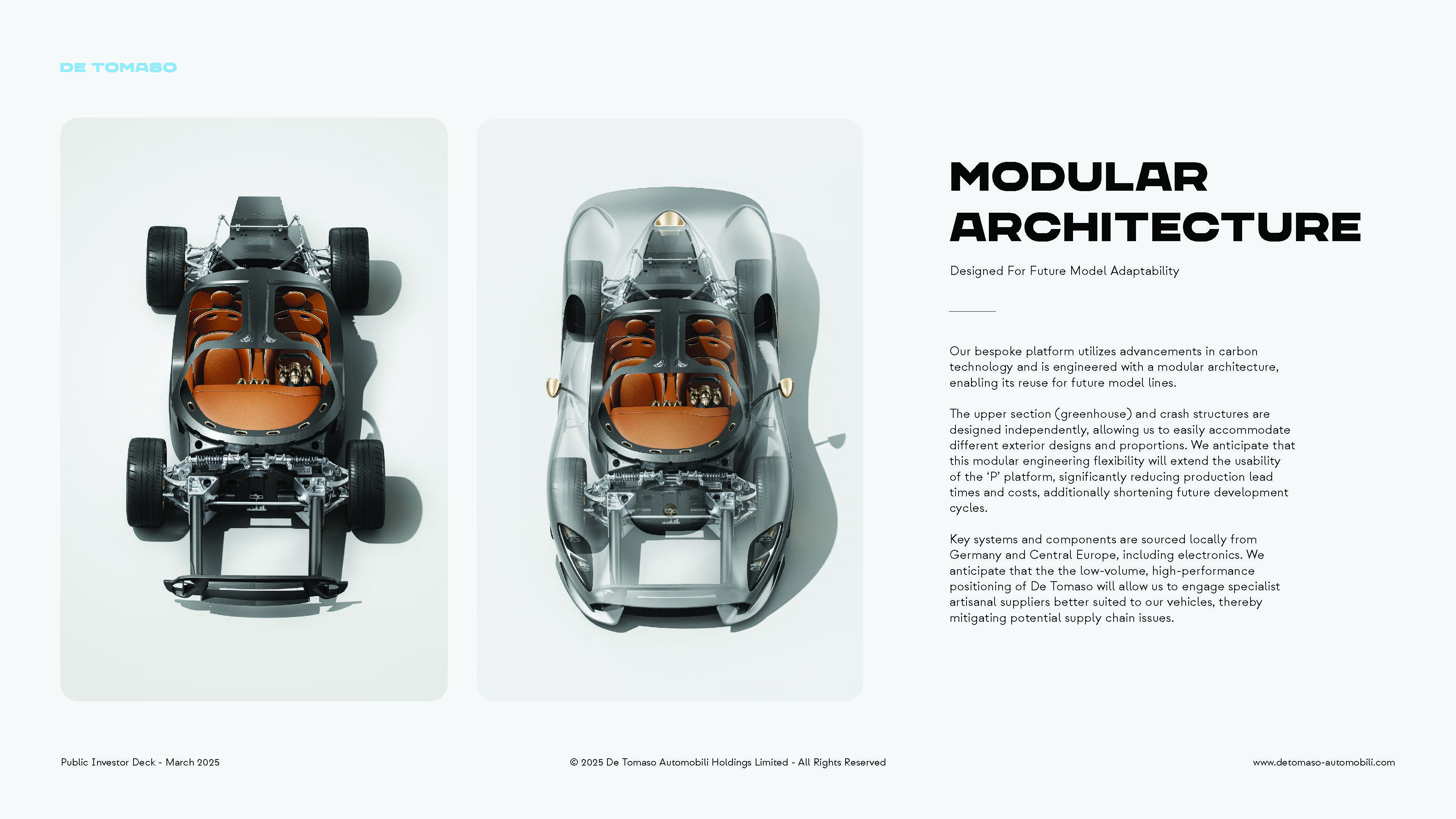“By leveraging ESGL’s expertise in low-impact manufacturing, De Tomaso Automobili believes that it can enhance the production of its highly sought after vehicles while further expanding its global market presence,” comments De Tomaso Automobili CEO Norman Choi. “This partnership underscores both companies’ commitment to driving operational efficiency without compromising the craftsmanship and prestige that defines De Tomaso Automobili’s legacy.”