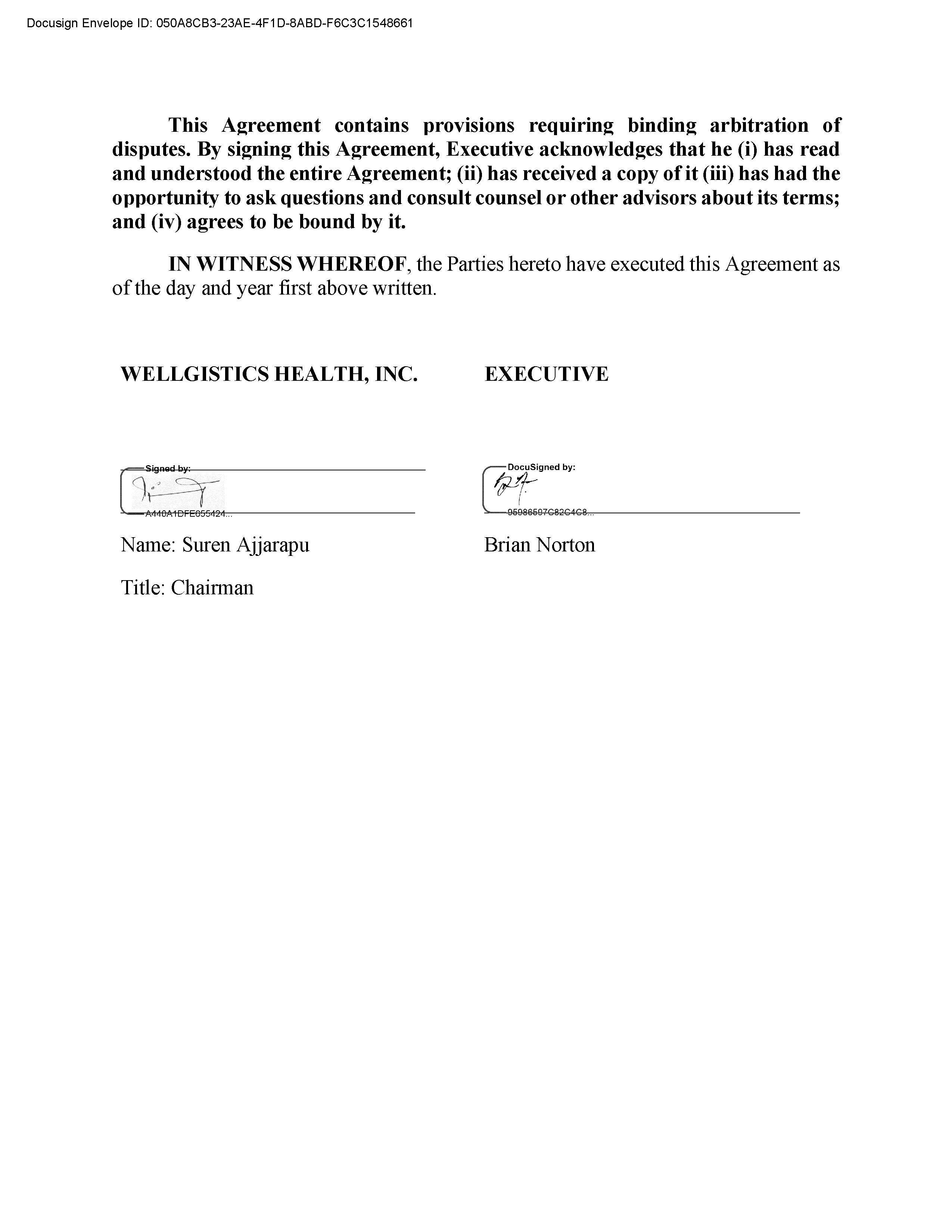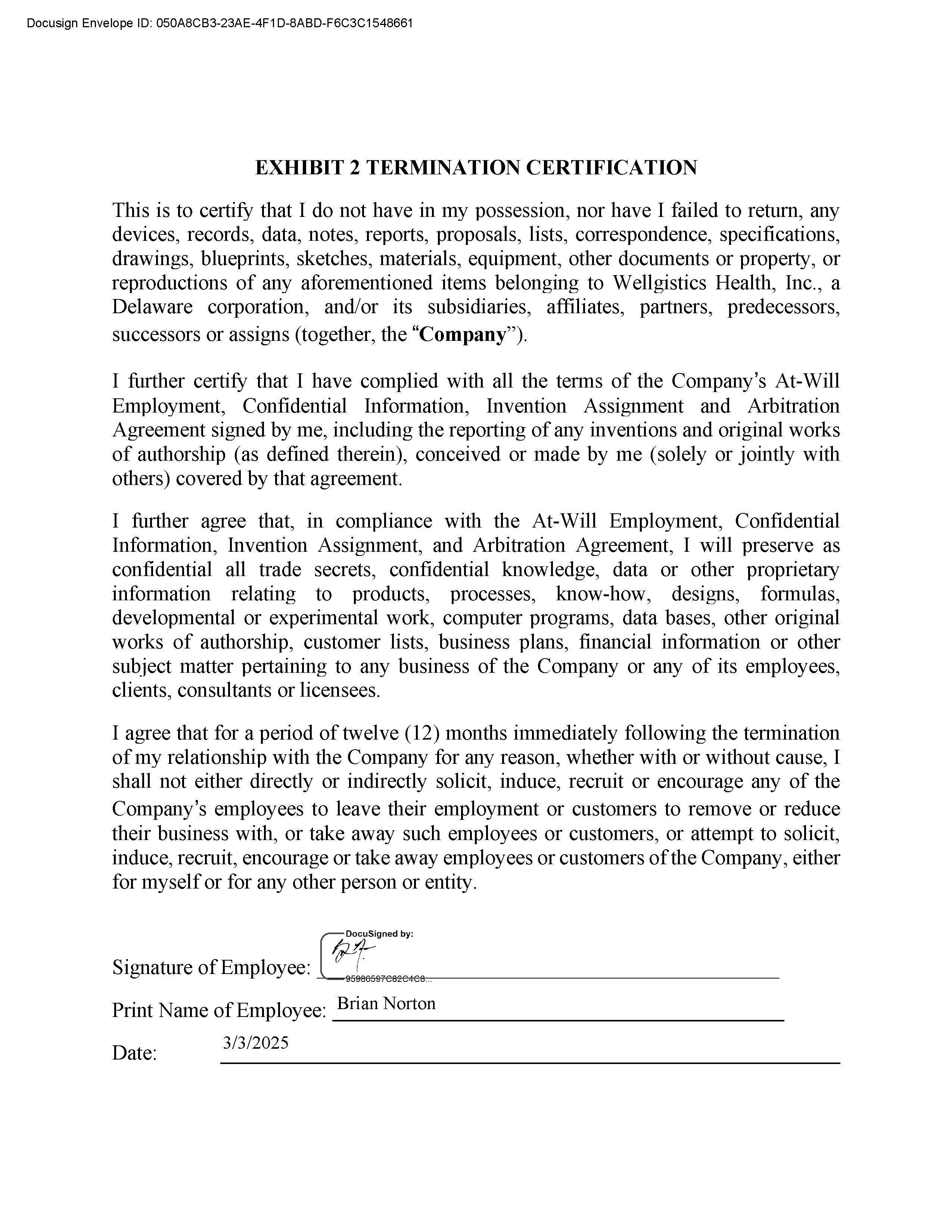 | ● | bonus payments in the form of Wellgistics Health Common Stock in an aggregate amount of up to $5 million that vest only if certain financial metrics are met, with unvested shares of Common Stock subject to repurchase by Wellgistics Health for a nominal purchase price if such financial metrics are not met; and | |