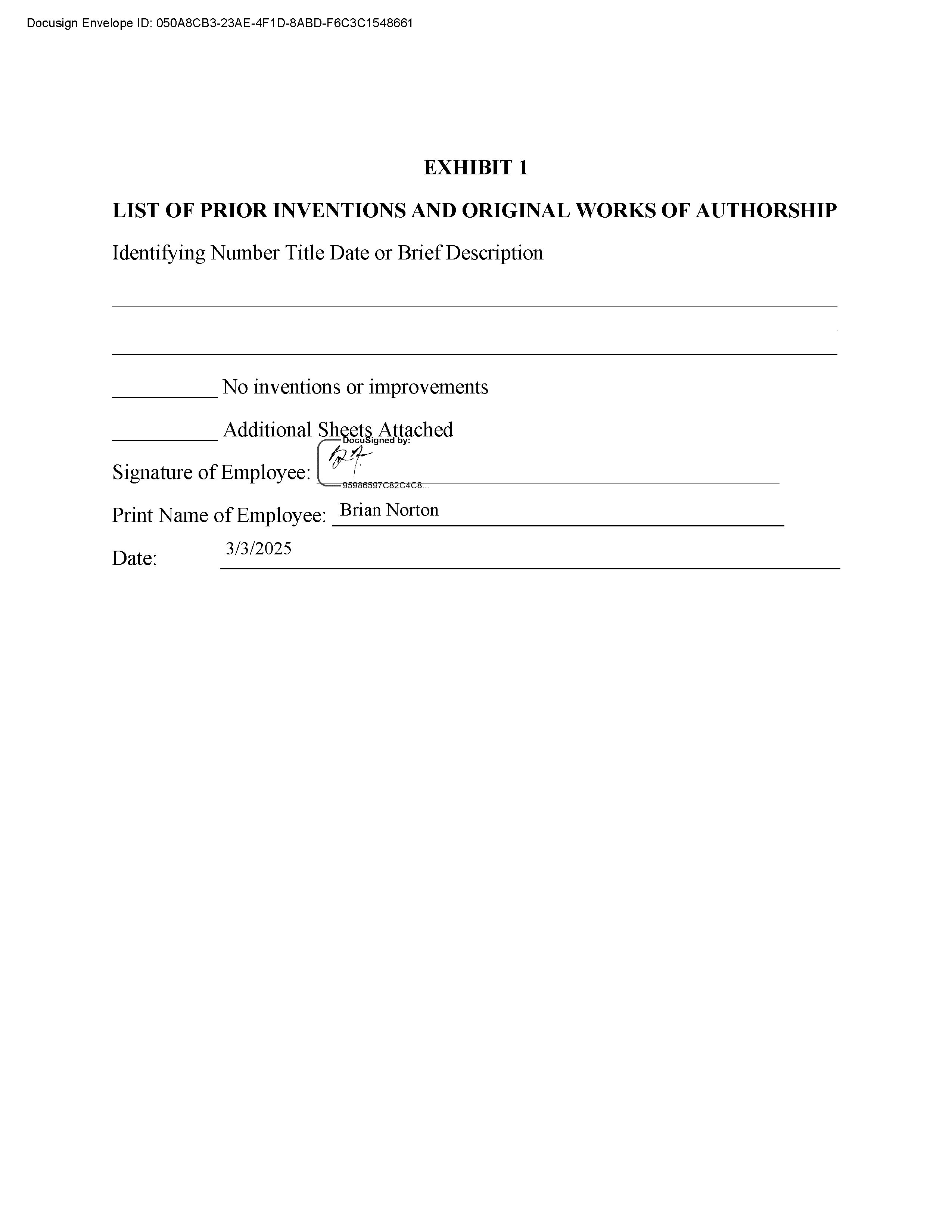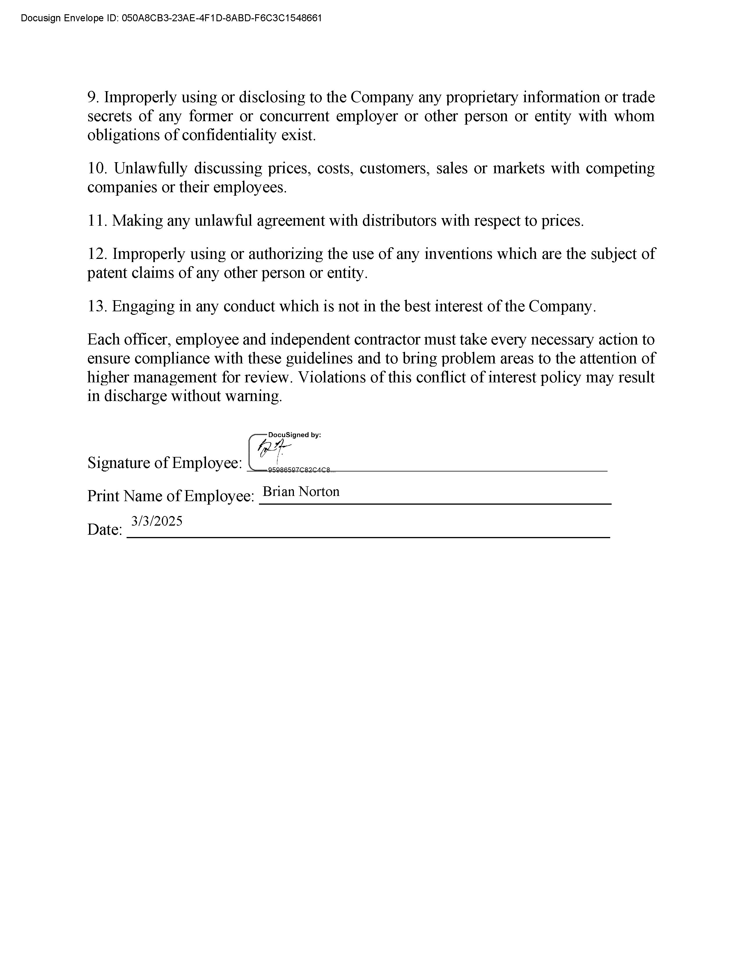 | Dated: March 6, 2025 | By: | /s/ Brian Norton |