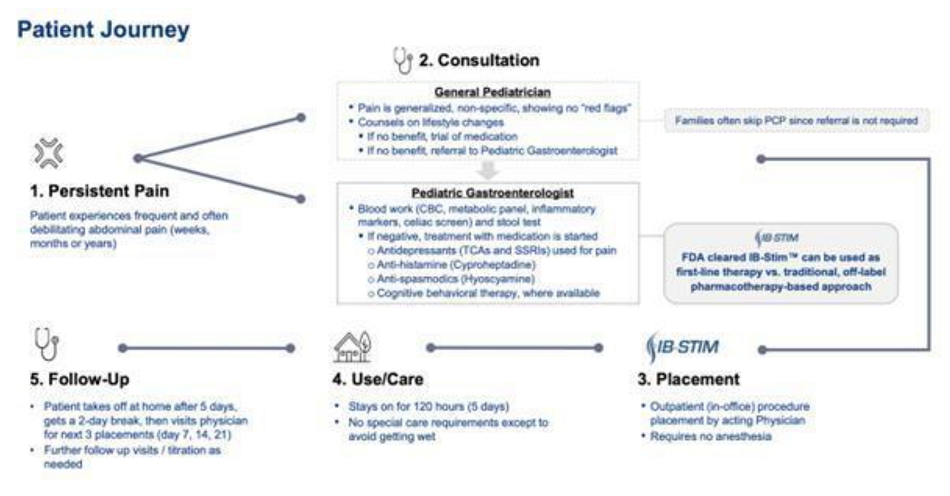 | ● | IB-Stim is the only currently used medical therapy that is better than placebo in a randomized controlled trial and received FDA clearance for pediatric IBS. |