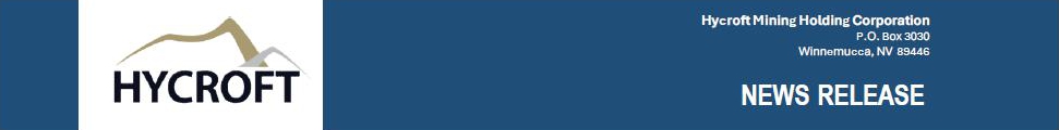 Diane Garrett, President and CEO, stated: “We are very pleased with the strong support for Hycroft by Mr. Sprott and Tribeca. Mr. Sprott has been a valued supporter of the Company for several years. His ongoing commitment has been instrumental to the Company’s advancement and enables us to accelerate development activities at the Hycroft Mine and continue exploration drilling to expand the two new high-grade silver systems. We welcome our newest shareholder, Tribeca, and we look forward to working closely with them to continue creating value at Hycroft.