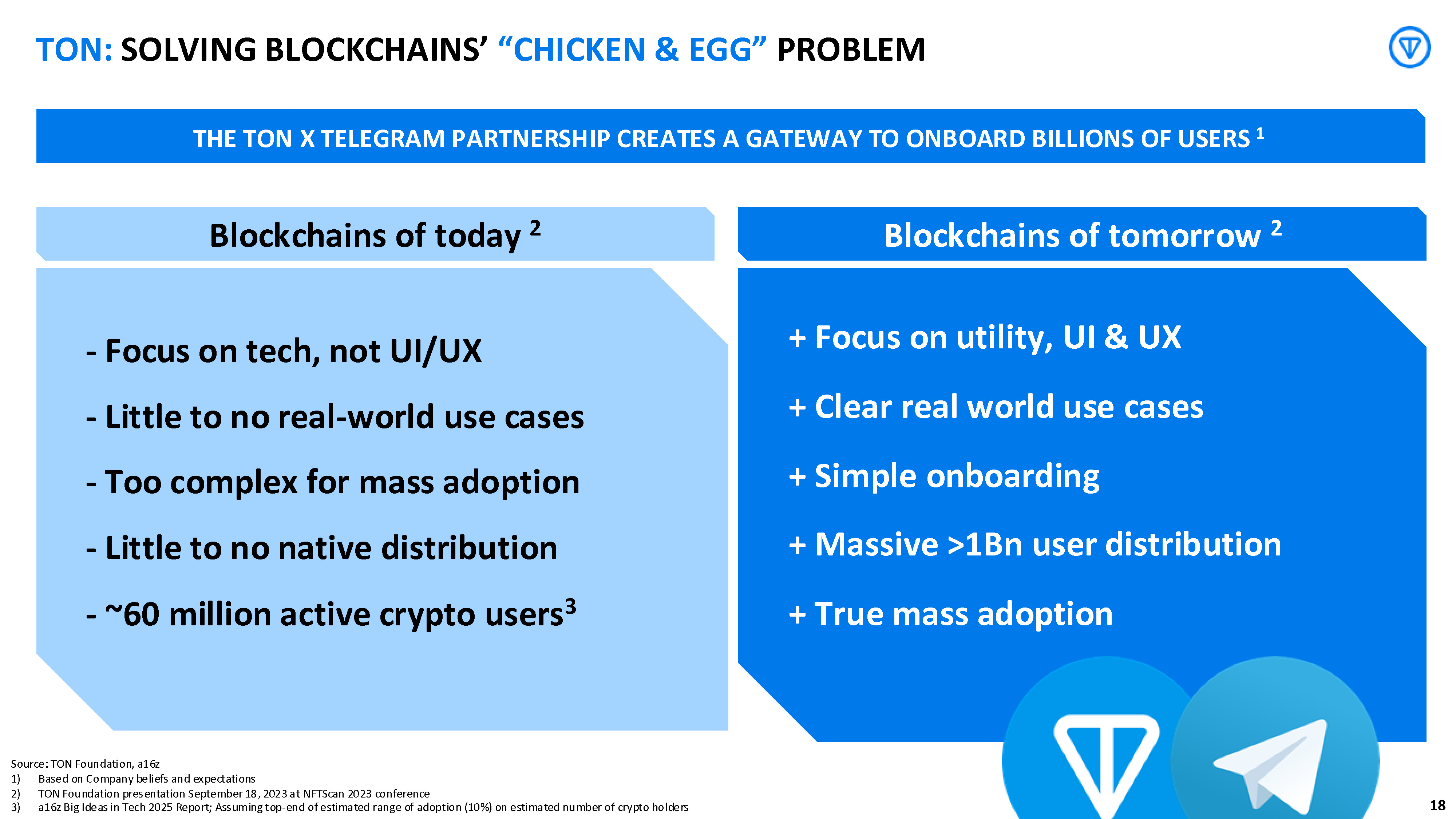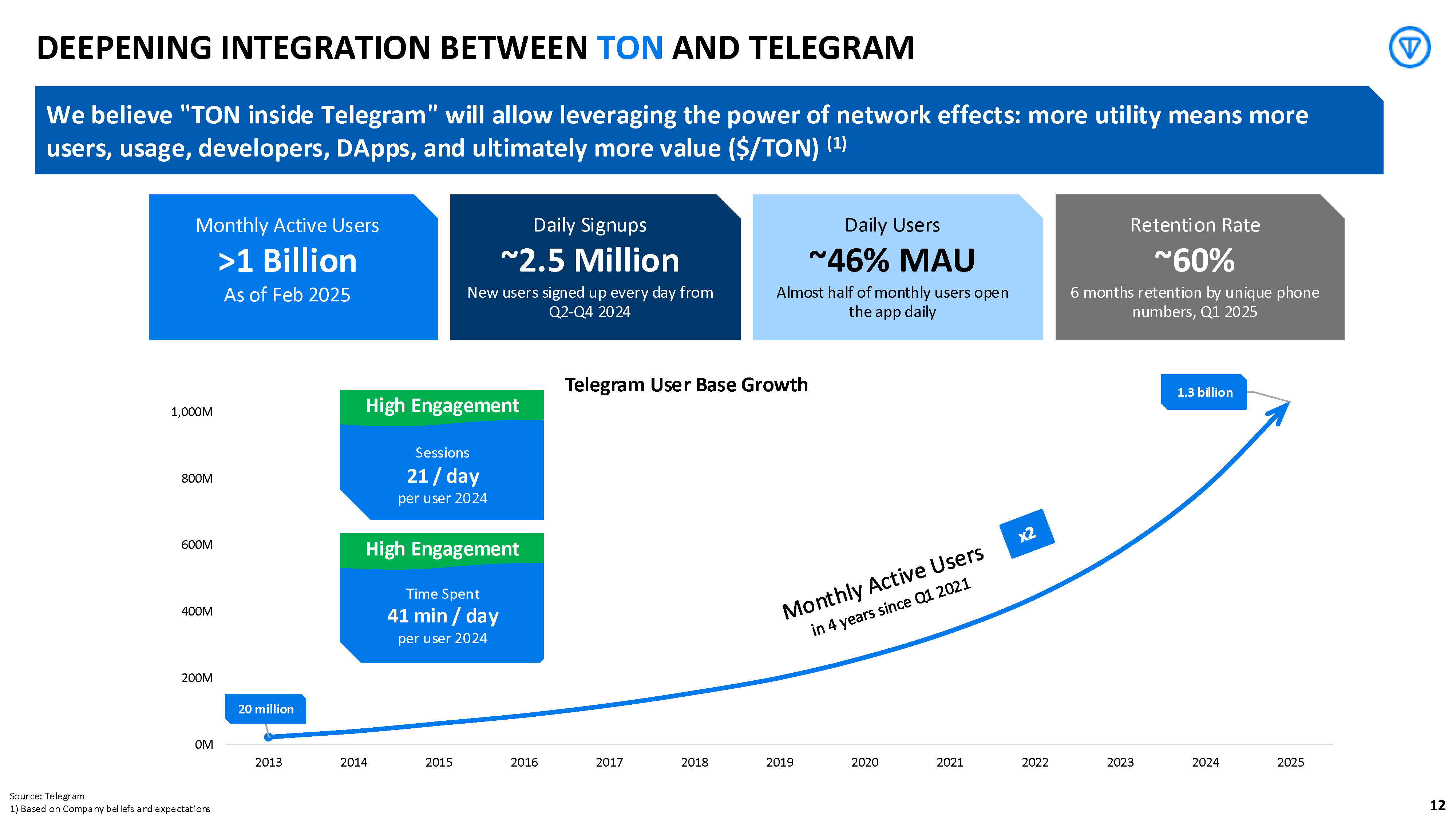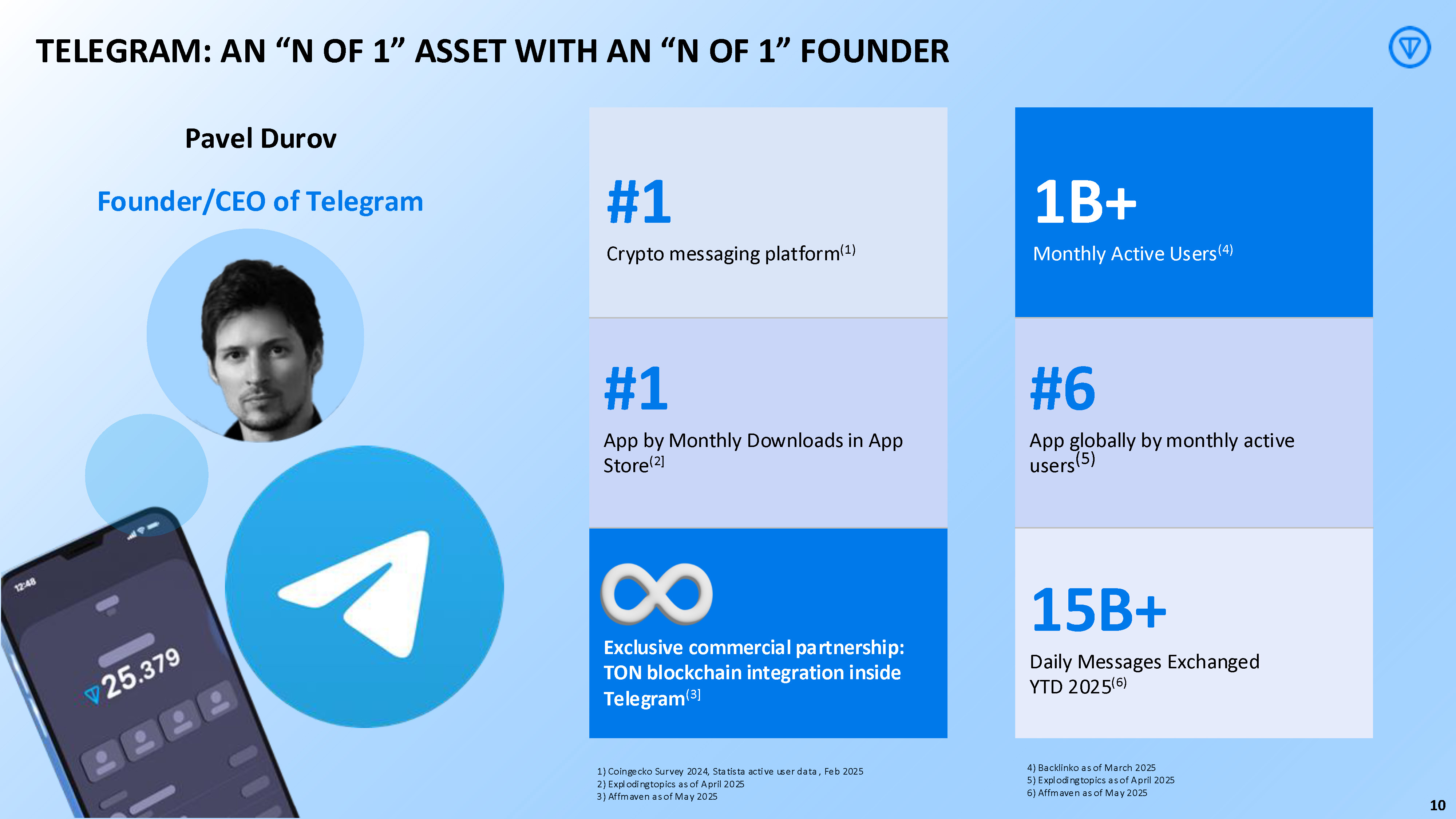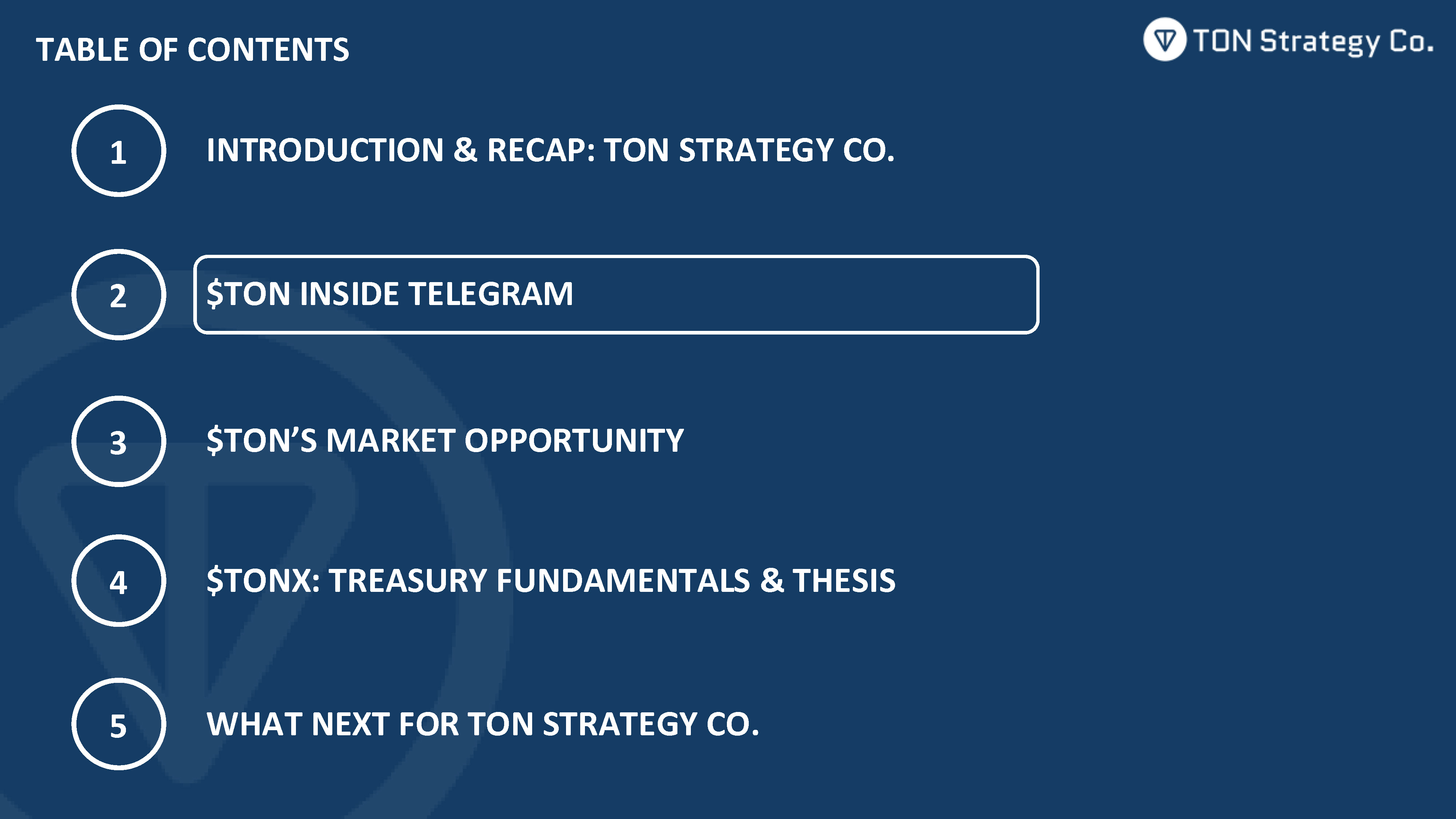 $TON is the native token of The Open Network (TON), a Layer-1 blockchain exclusively integrated into Telegram, where it provides the rails for payments, digital property, and decentralized applications across a platform with more than 1 billion monthly active users. In his remarks highlighted below, Mr. Stotz built on this foundation, presenting the Company’s investment thesis and outlining the opportunity created by $TON’s integration with Telegram.