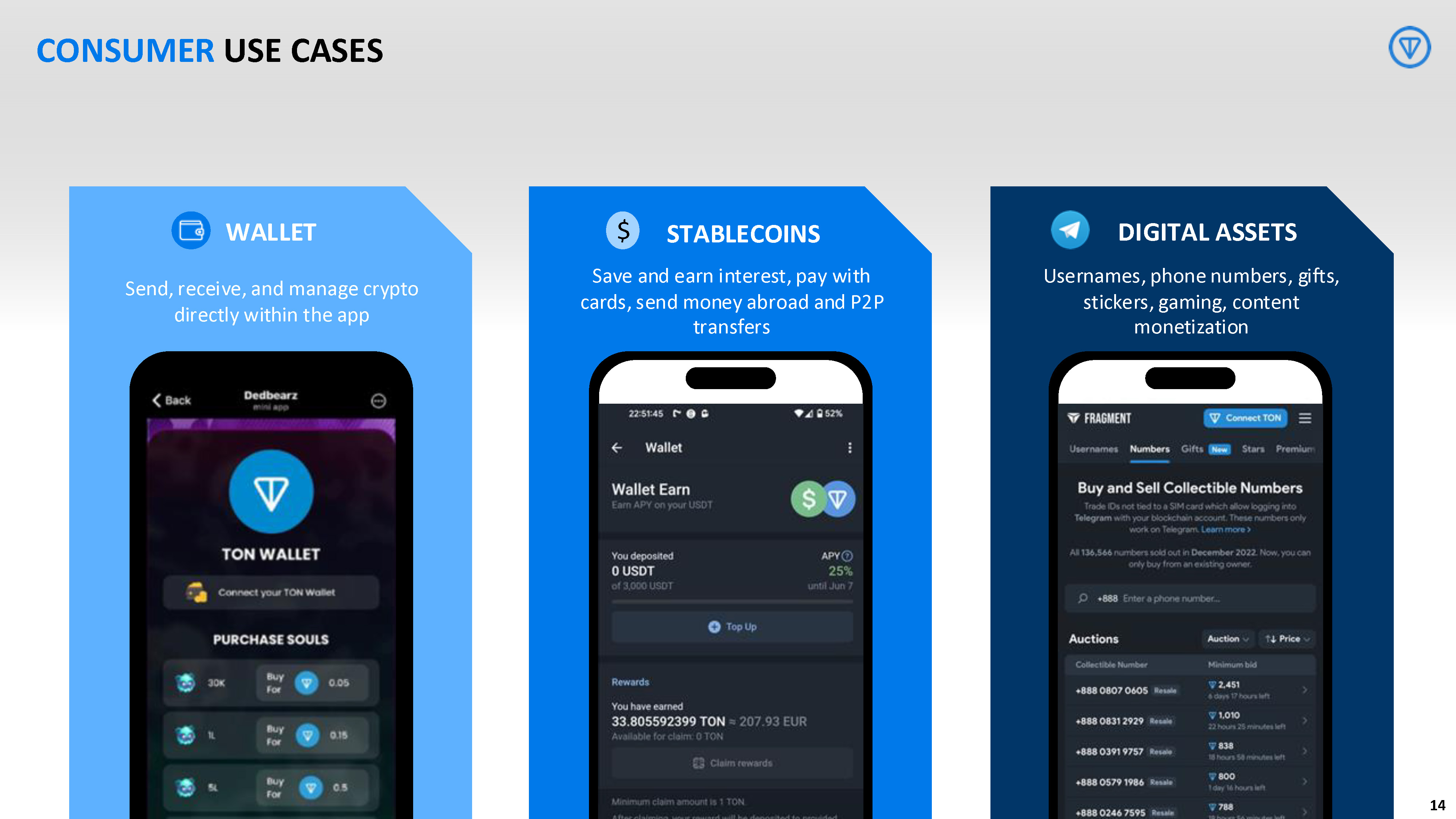 | ● | Investment case for $TON – Proven use cases already include stablecoin payments, digital property (such as Telegram usernames), and mini apps, with potential to evolve into a “super app.” Despite this traction, $TON remains 60% below its all-time high, with U.S. market access only just beginning. | |