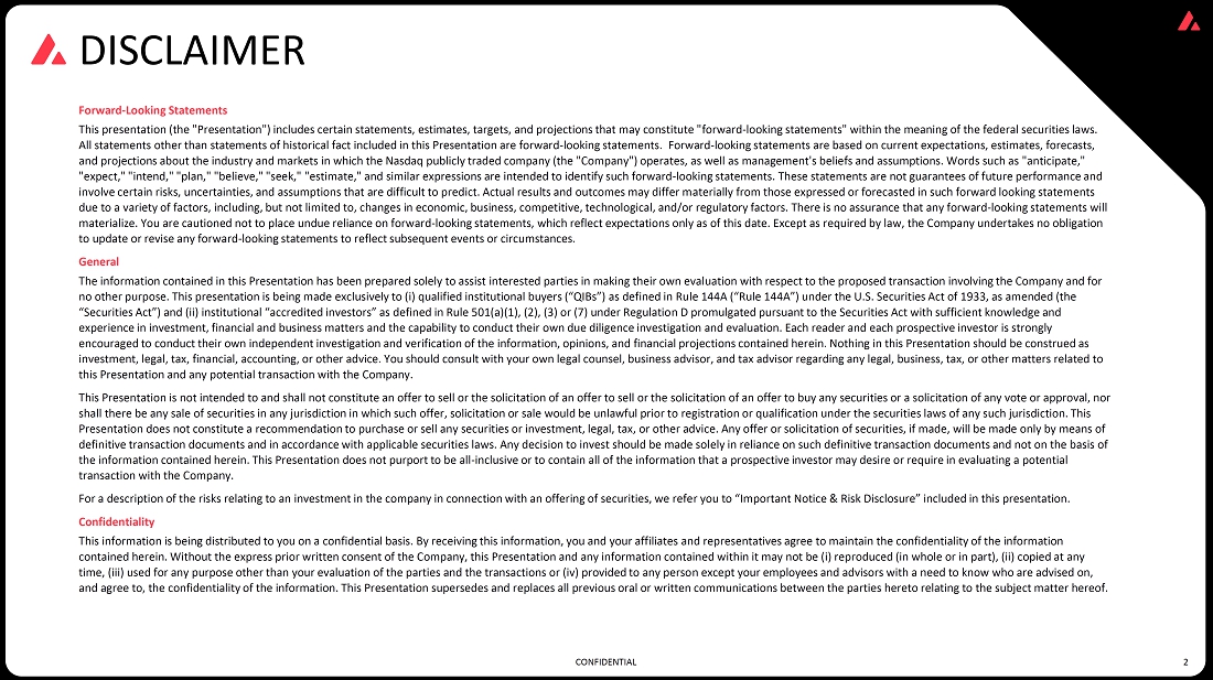 This Current Report on Form 8-K includes forward-looking statements. These forward-looking statements generally can be identified by the use of words such as “anticipate,” “expect,” “plan,” “could,” “may,” “will,” “believe,” “estimate,” “forecast,” “goal,” “project,” and other words of similar meaning. These forward-looking statements address various matters including statements relating to the anticipated benefits and timing of the completion of the Offering and related transactions, the intended use of proceeds from the Offering, the Company’s proposed digital asset treasury strategy, the digital assets to be held by the Company and the expected benefits from the transactions described herein. Each forward-looking statement contained in this Current Report on Form 8-K is subject to risks and uncertainties that could cause actual results to differ materially from those expressed or implied by such statement. Applicable risks and uncertainties include, among others, the risk that the proposed transactions described herein may not be completed in a timely manner or at all; the Company’s shareholder meeting may not provide the necessary approval for the Company to close the Offering; failure to realize the anticipated benefits of the Offering and related transactions, including the proposed digital asset treasury strategy; changes in business, market, financial, political and regulatory conditions; risks relating to the Company’s operations and business, including the highly volatile nature of the price of AVAX Tokens and other cryptocurrencies; the risk that the Company’s stock price may be highly correlated to the price of the digital assets that it holds; risks related to increased competition in the industries in which the Company does and will operate; risks relating to significant legal, commercial, regulatory and technical uncertainty regarding digital assets generally; risks relating to the treatment of crypto assets for U.S. and foreign tax purpose, as well as those risks and uncertainties identified in this Current Report on Form 8-K, as well as in the investor presentation filed as Exhibit 99.1 to this Current Report on Form 8-K, and those identified under the heading “Risk Factors” in the Company’s Annual Report on Form 10-K for the fiscal year ended December 31, 2024 and other information the Company has or may file with the SEC.