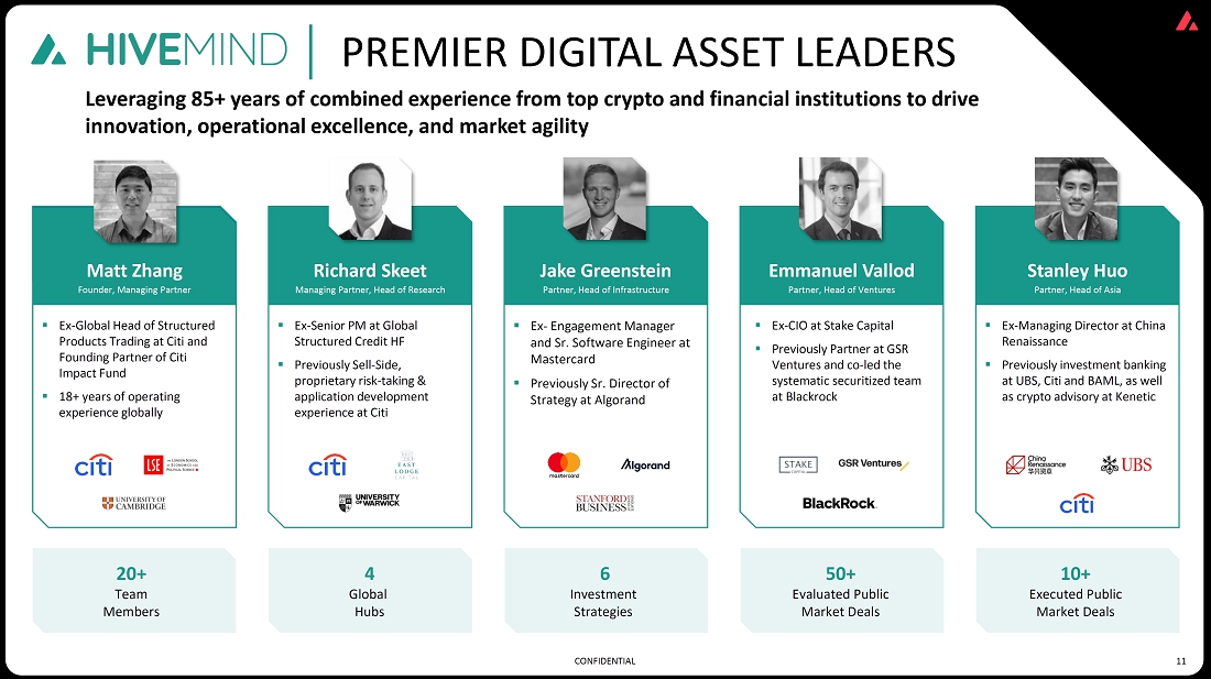 “Our vision is to build the ‘Berkshire Hathaway of the onchain financial economy,’ which is the execution of a multi-year thesis that Wall Street needs a smarter, more scalable way to get exposure to institutional grade blockchain infrastructure,” said Matt Zhang, Founder of Hivemind Capital and nominated Chairman of the Board.
