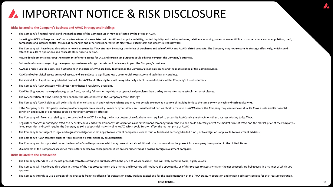 | ● | The Company will have broad discretion in how it executes its AVAX strategy, including the timing of purchases and sale of AVAX and AVAX-related products. The Company may not execute its strategy effectively, which could affect its results of operations and cause its stock price to decline. | |