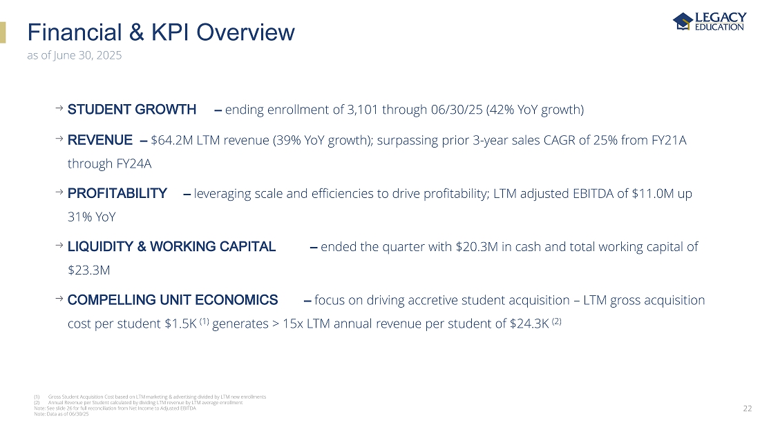 If an emerging growth company, indicate by check mark if the registrant has elected not to use the extended transition period for complying with any new or revised financial accounting standards provided pursuant to Section 13(a) of the Exchange Act. ☒ Legacy Education Inc. (the “Company”) has prepared presentation materials (the “Presentation Materials”) that management intends to use from time to time on and after October 13, 2025, in presentations about the Company’s operations and performance. The Presentation Materials are filed as Exhibit 99.1 to this Current Report on Form 8-K.