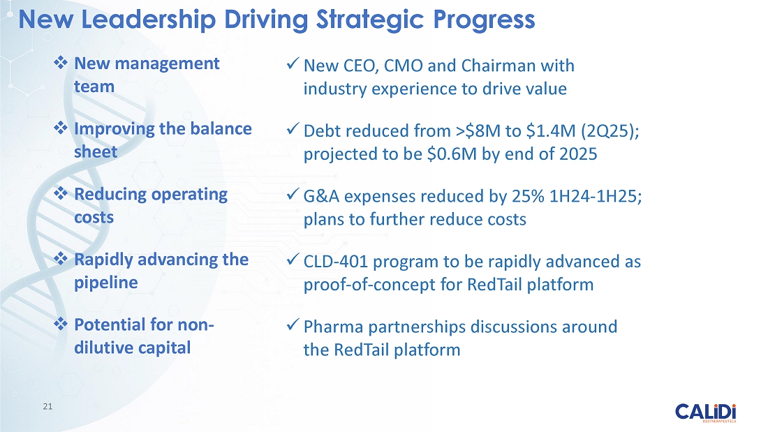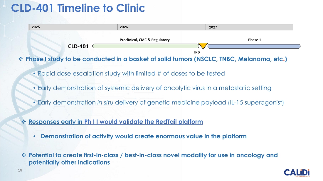 “We are excited to have such an internationally esteemed group of advisors working with the company,” said Eric Poma, Ph.D., CEO of Calidi. “We believe their insight and experience will help guide the efficient development of CLD-401 into the clinic and advance what the utility of the RedTail platform in oncology and beyond.”