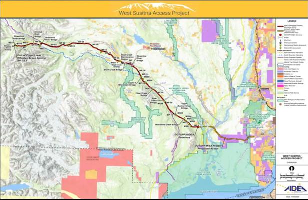Figure 2. Proposed route for the West Susitna Access Road. Source AIDEA.