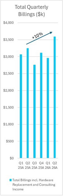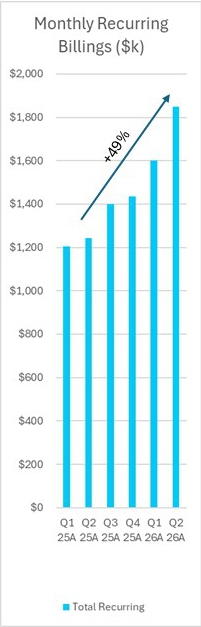 FatPipe GAAP revenue is aligned to new bookings of contracts. Billings follow customer deployments. Net new bookings has remained consistent quarter over quarter as the business scales. As booked revenue converts to billings, FatPipe has seen strong growth on billings, with monthly recurring billings up 49% YoY. As this faster-growing revenue segment scales, it represents a larger portion of FatPipe’s total revenues.